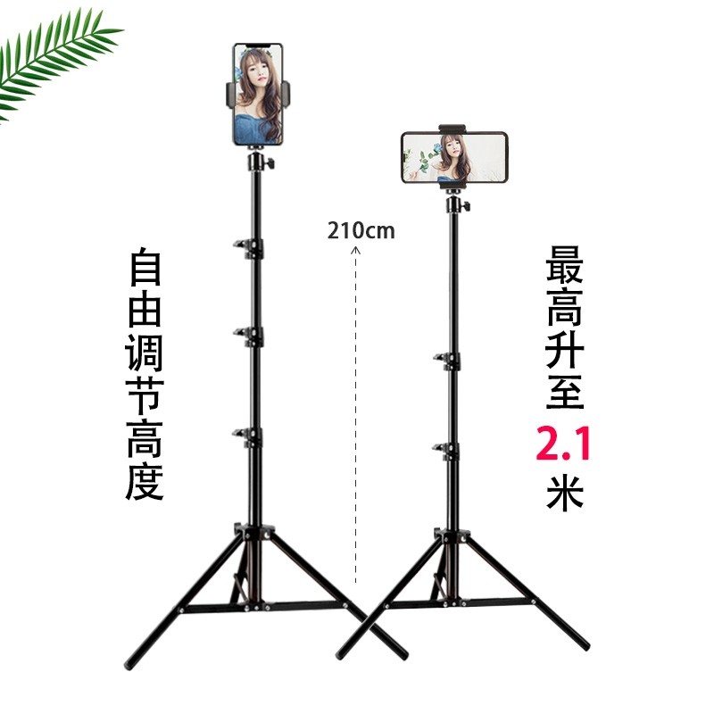 手机拍摄支架直播专用自拍杆三脚架落地式多功能支撑架通用捭机架户外便携伸缩升降网课考研复试架子三角支夹