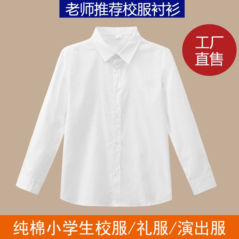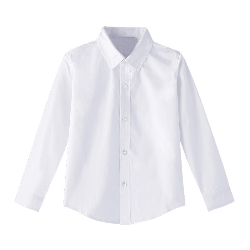男童白衬衫长袖无口袋纯棉白色衬衣女孩儿童装春夏装学生校服班服