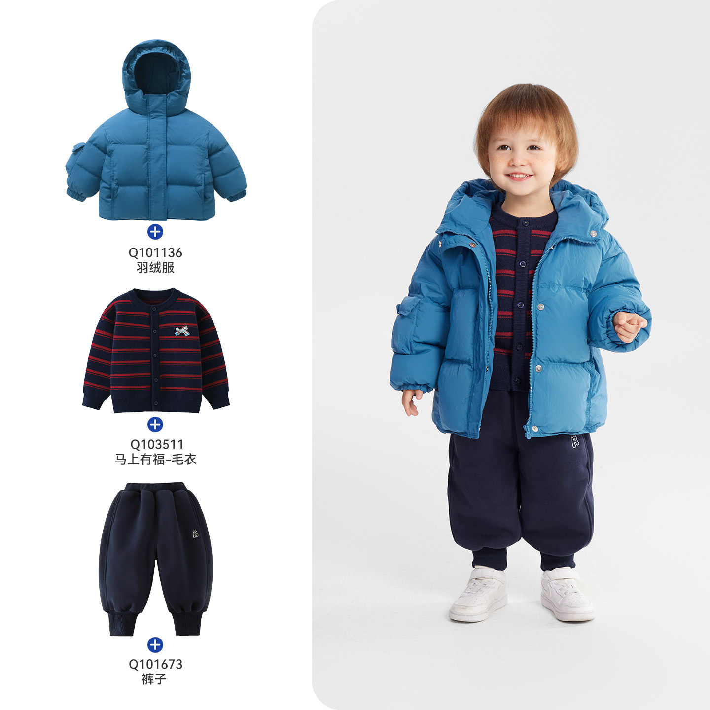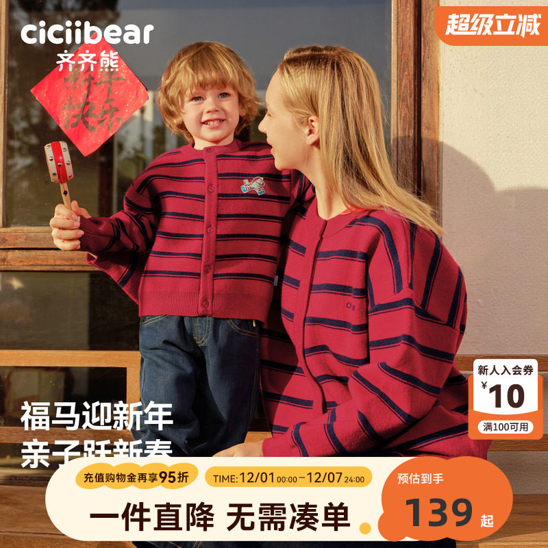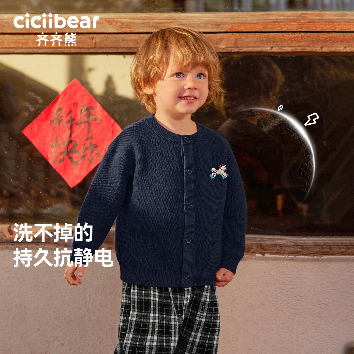 [骏马福裳]齐齐熊男童毛衣开衫冬装新年红色加厚宝宝毛线外套上衣