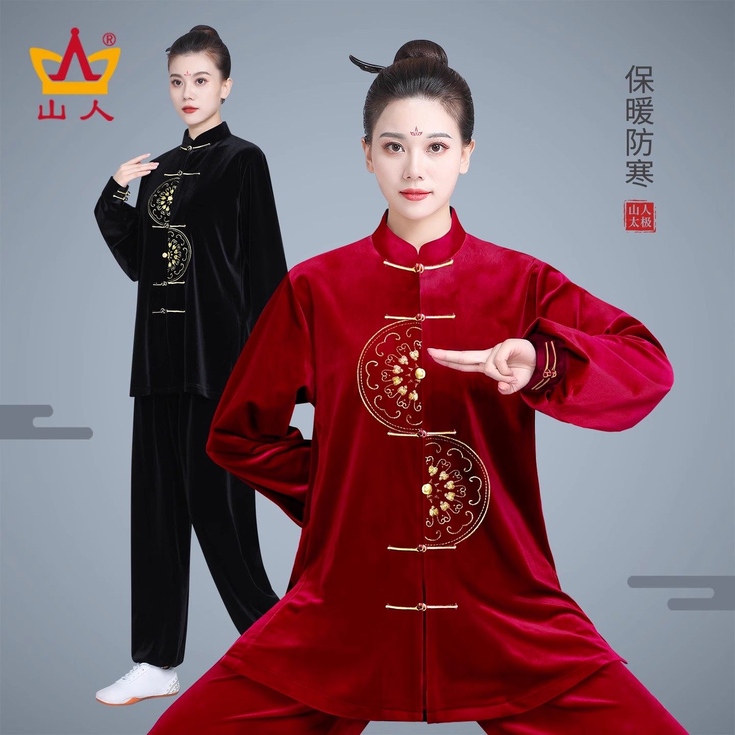 太极服女秋冬新款高端刺绣表演服南韩绒加厚加绒男士太极拳练功服