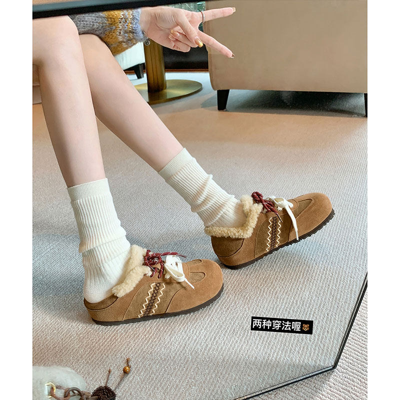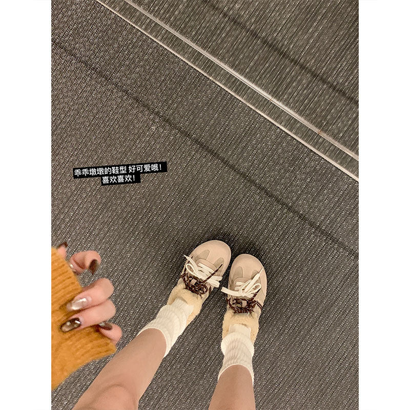 板栗小面包~保暖鸳鸯鞋带内增高羊毛毛勃肯鞋训鞋平底防滑秋冬