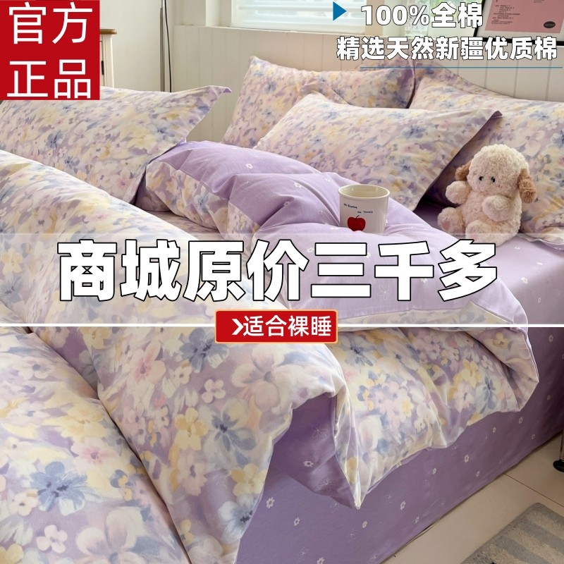 A类床上用品全棉四件套纯棉被套床单2025新款床品被罩宿舍三件套4