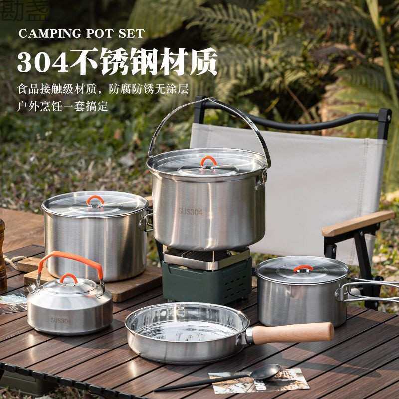 304不锈钢户外锅具野炊便携套锅野外露营餐具用品烧水壶套装炊具