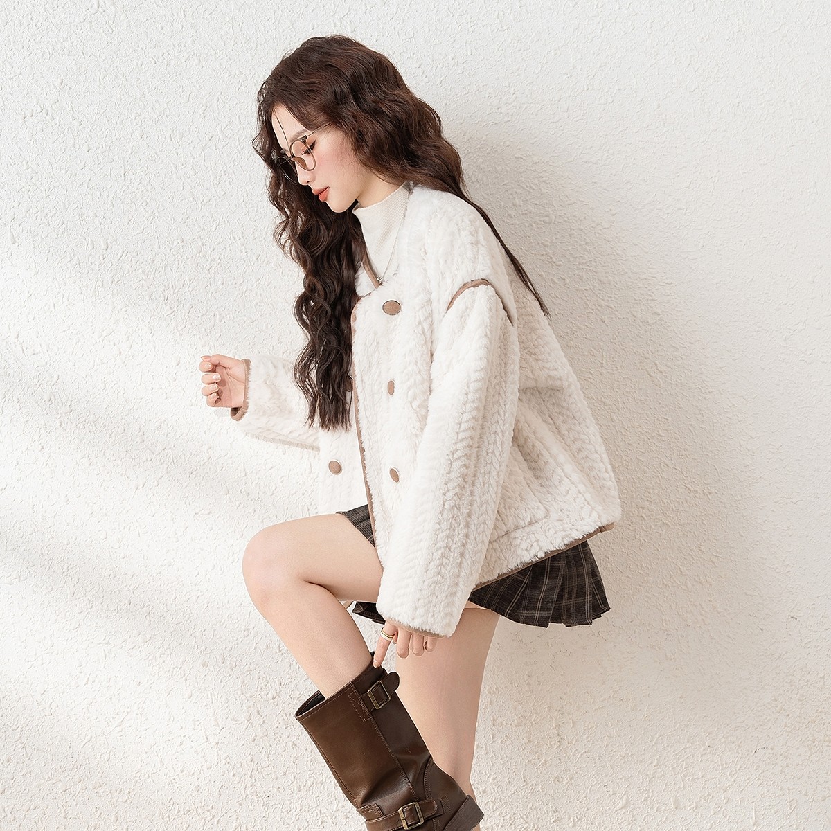 唐狮冬季新款女外套加厚富家千金风白色短款上衣保暖超好看流行tu