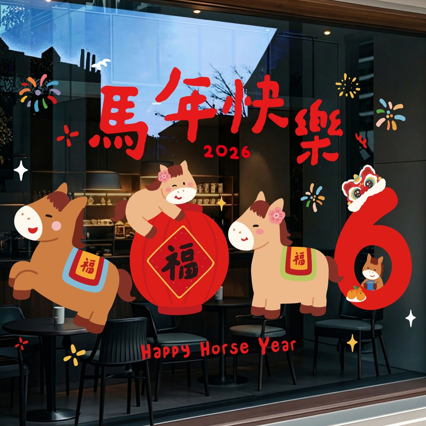 2026新年窗花马年装饰新款玻璃门贴纸静电橱窗贴春节氛围布置贴画