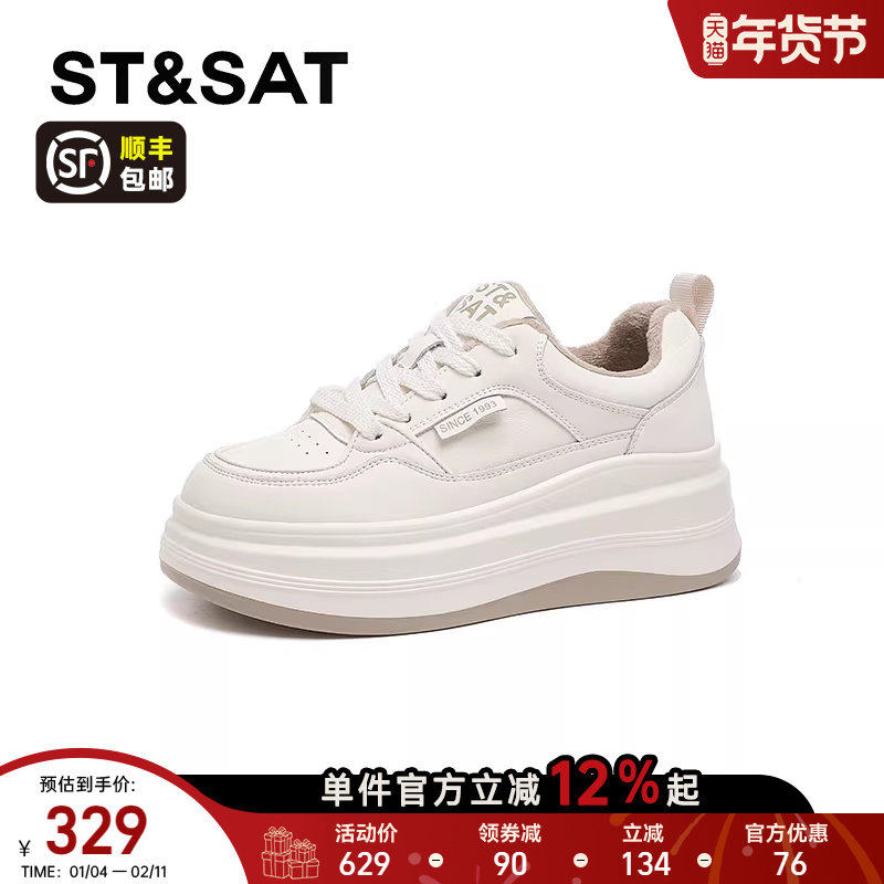 星期六厚底加绒小白鞋女款2025新款冬季休闲板鞋软底增高运动女鞋