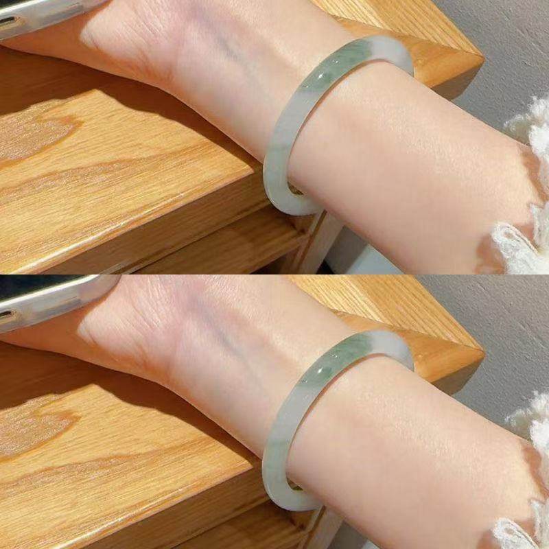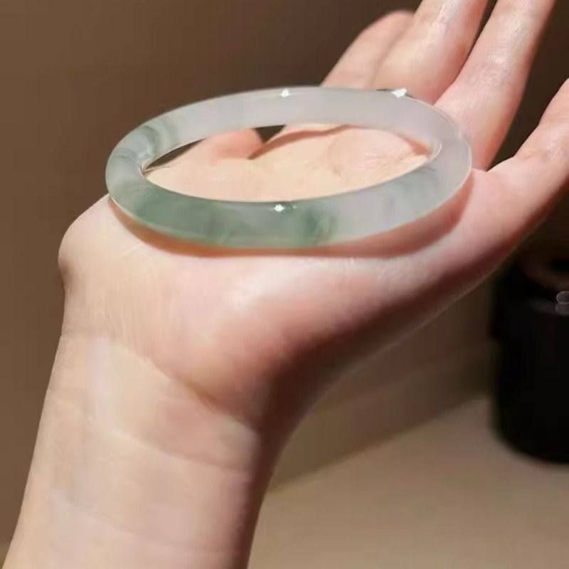 天山翠手镯手链精致女款细条玉镯仿冰透飘花款小众镯子半山细圆条