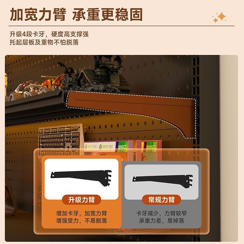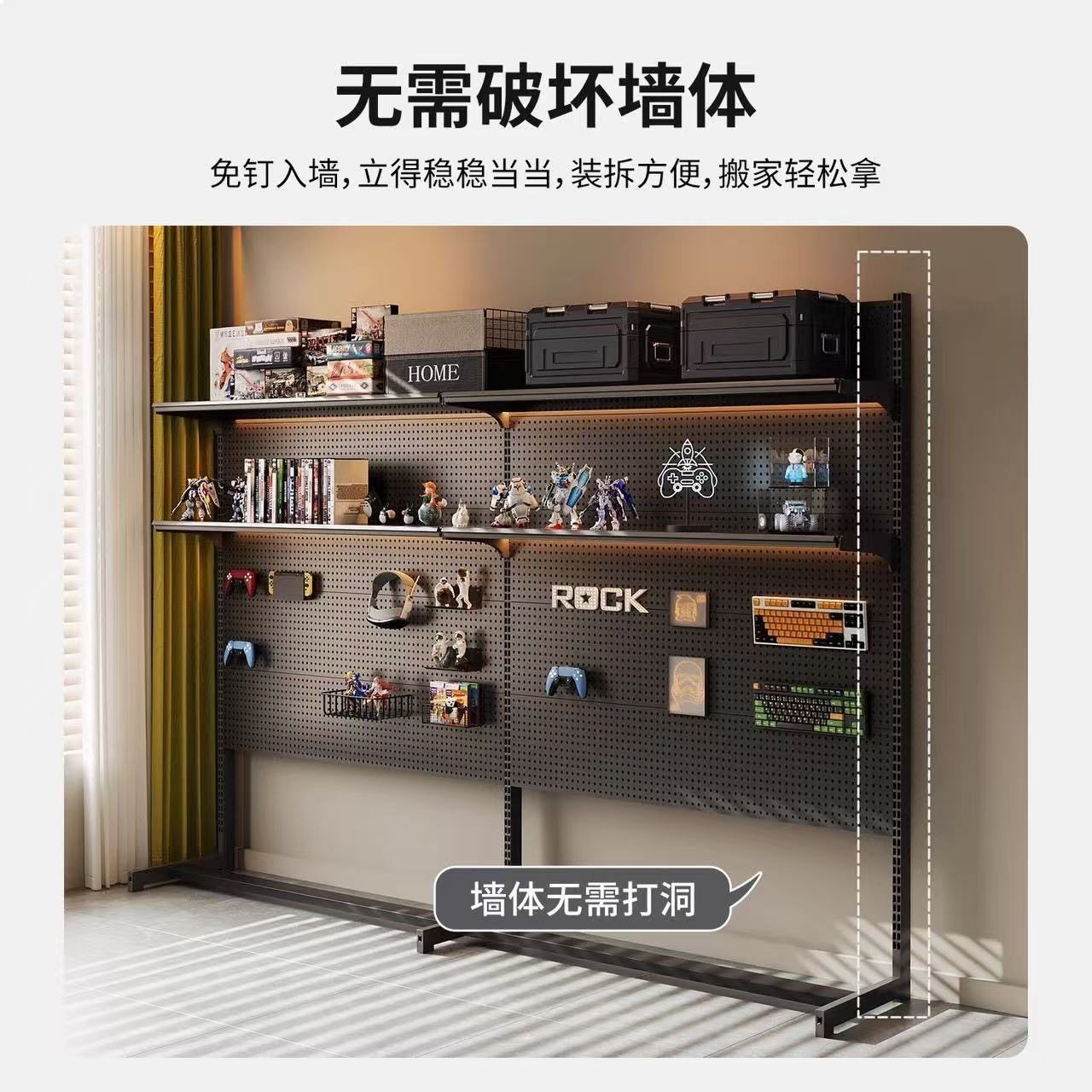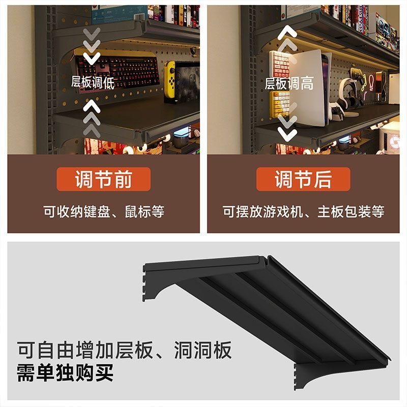 洞洞板书架置物架免打孔电脑桌面改造落地电竞房间装饰金属收纳架