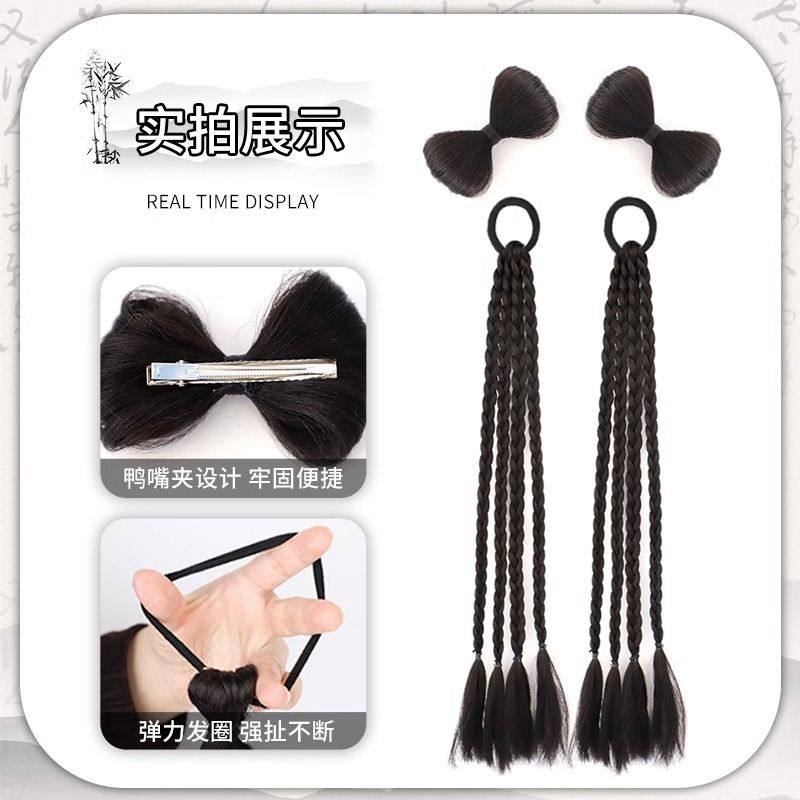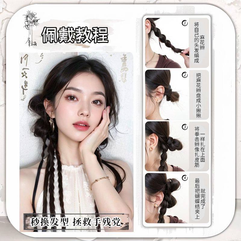 y2k假发辫子女马尾甜酷辣妹亮钻麻花拳击辫蝴蝶结自然双马尾假发