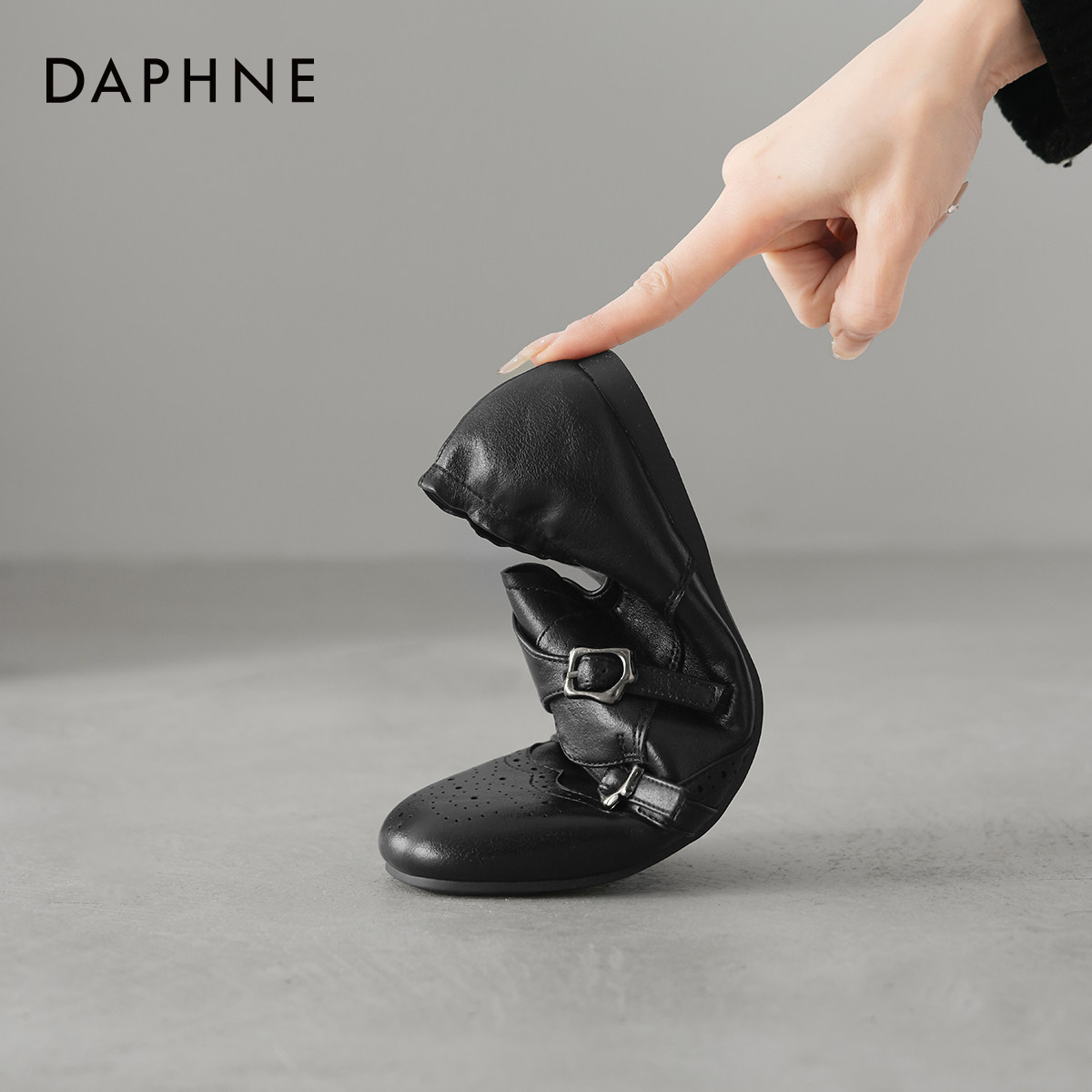 达芙妮复古乐福鞋女2026春季新款英伦风黑色小皮鞋软底豆豆鞋单鞋