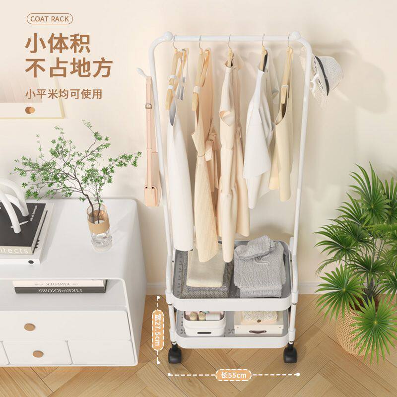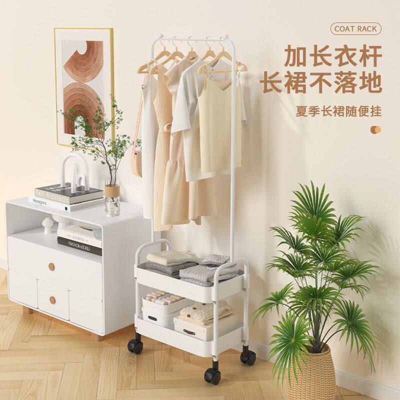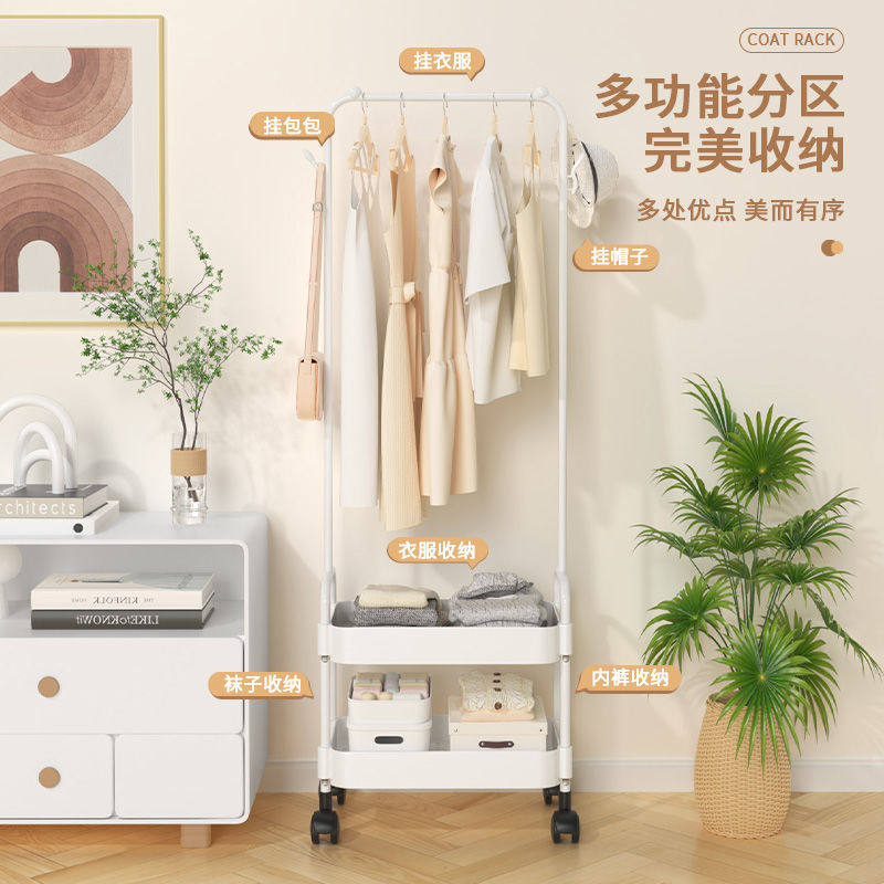 奶油风落地卧室挂衣架网红可移动带轮家用简易衣架阳台晾衣帽架子
