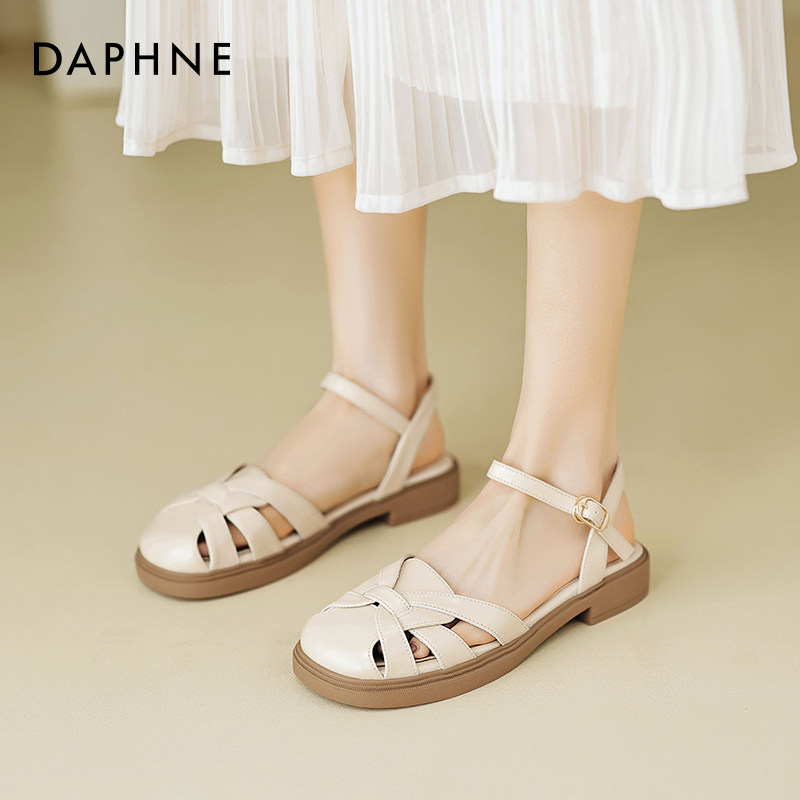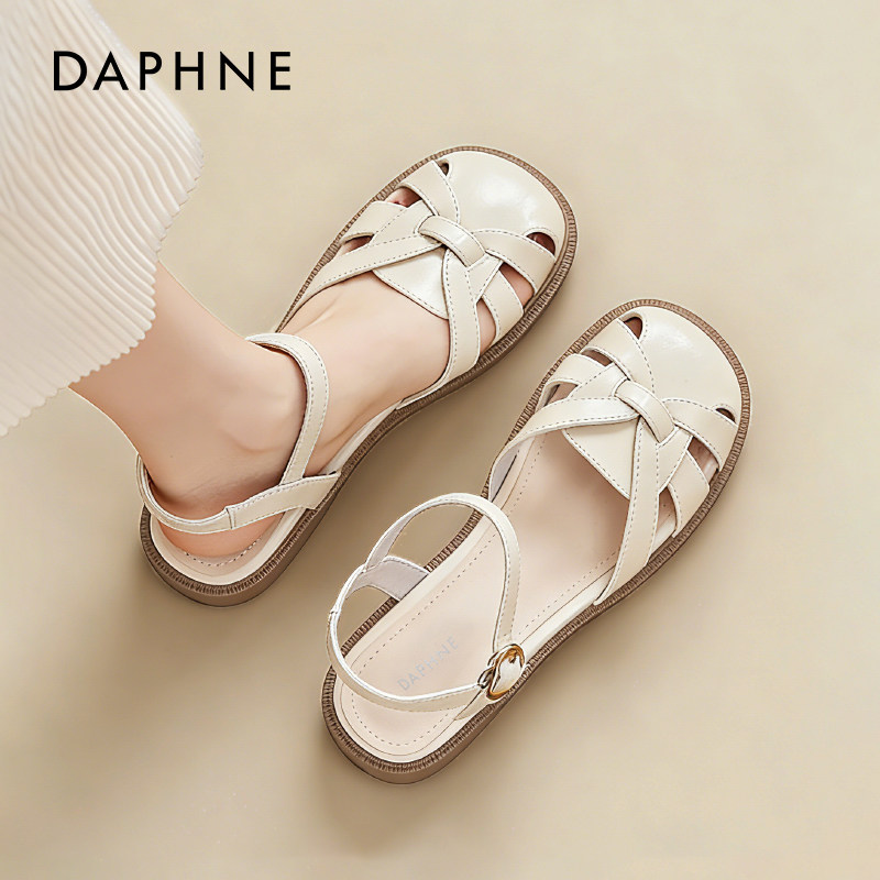 达芙妮罗马包头凉鞋女2026夏季新款外穿好看不累脚编织平底猪笼鞋