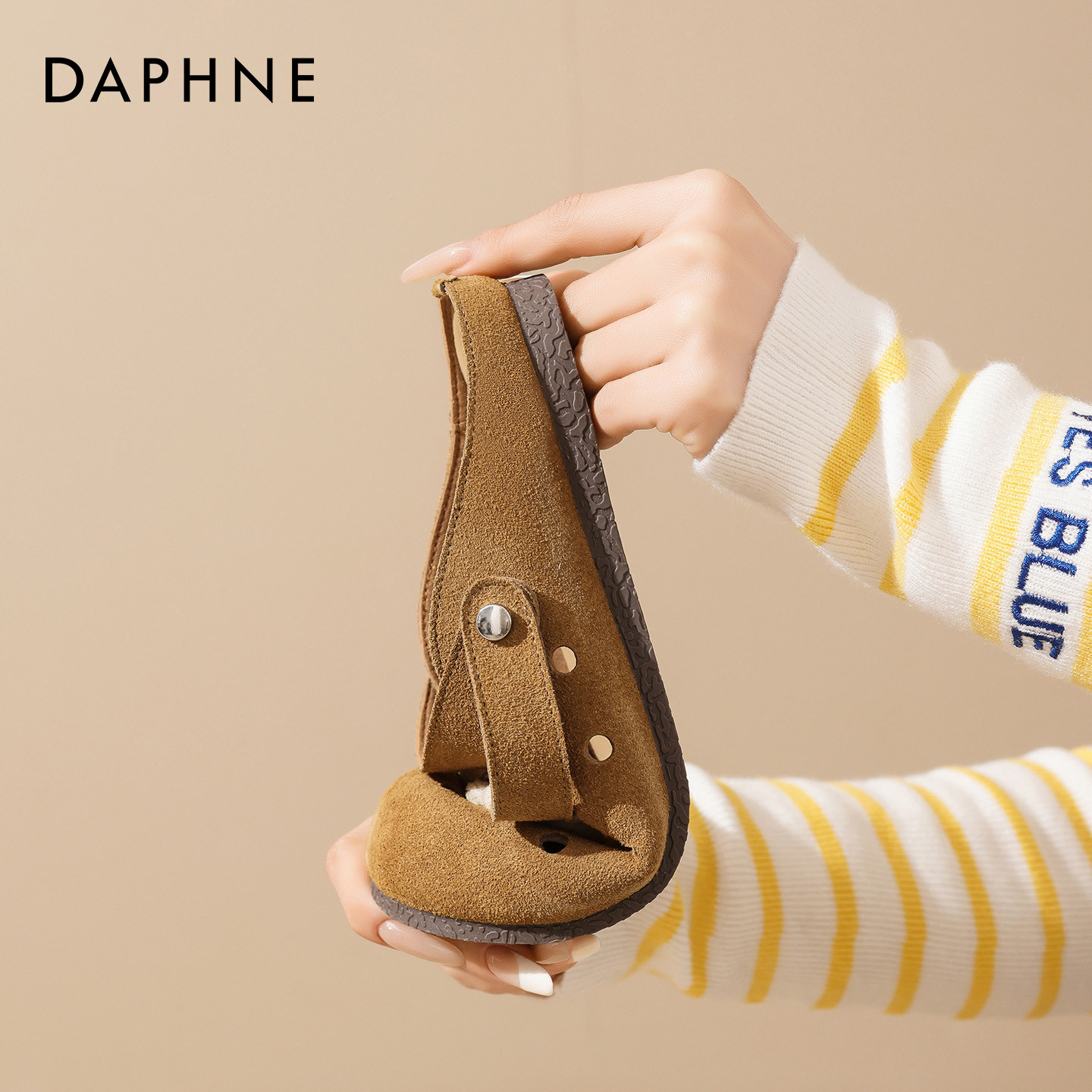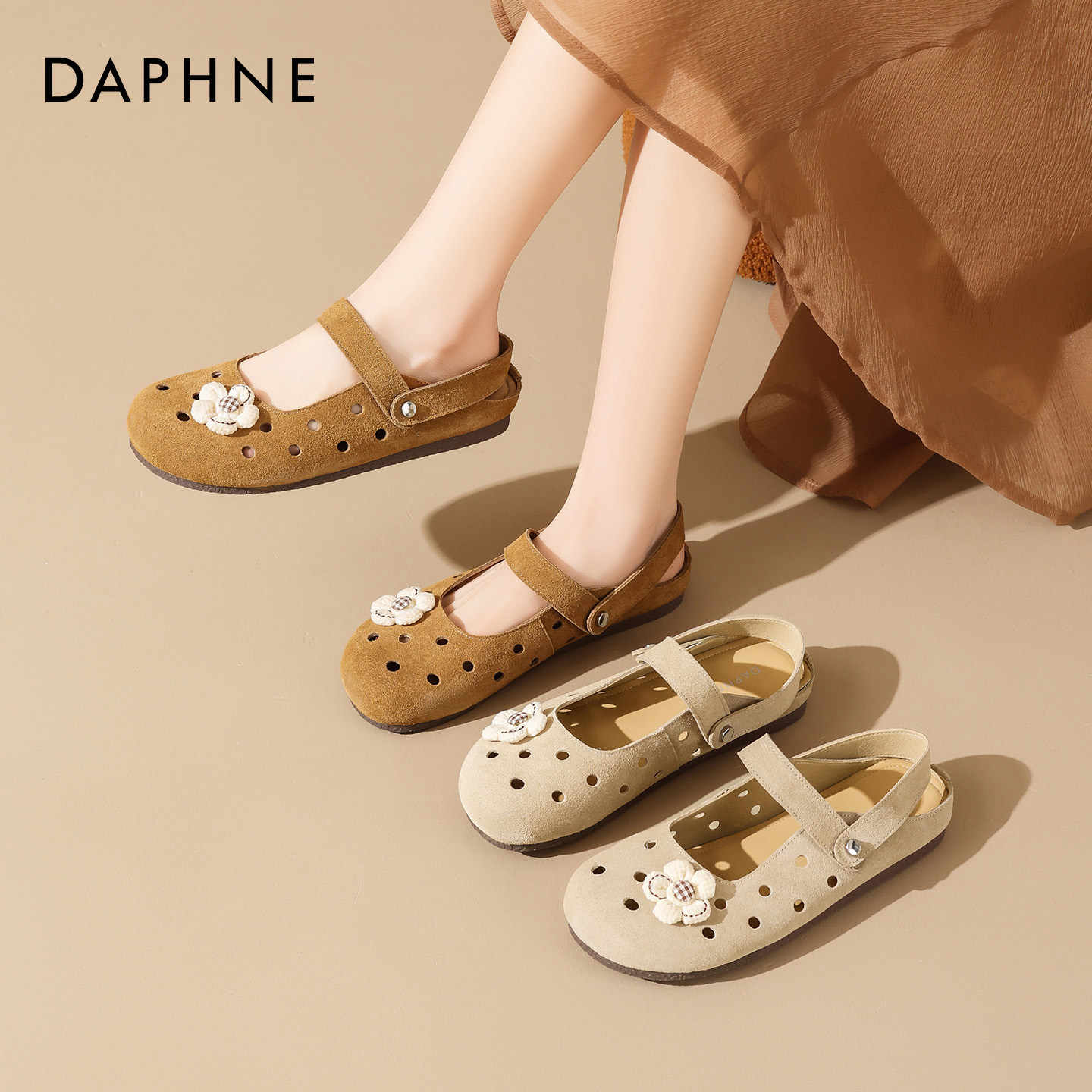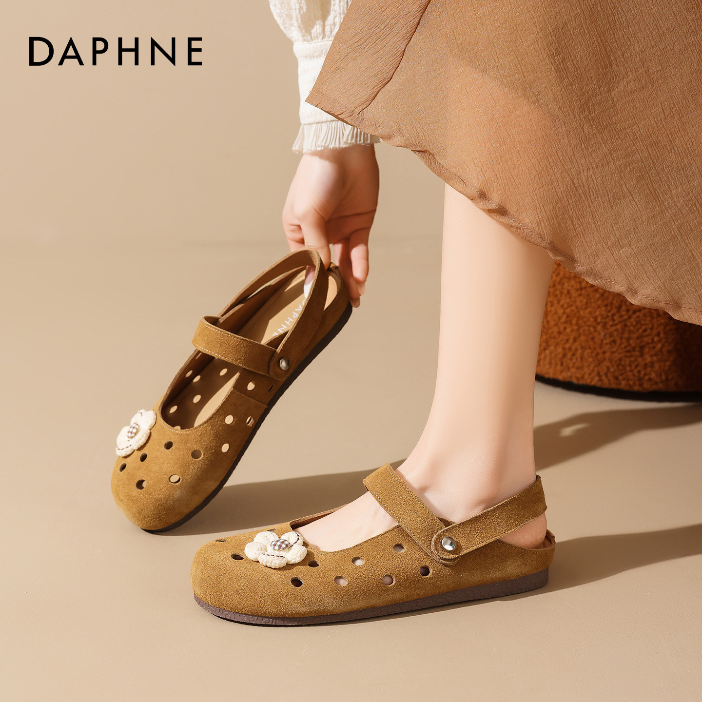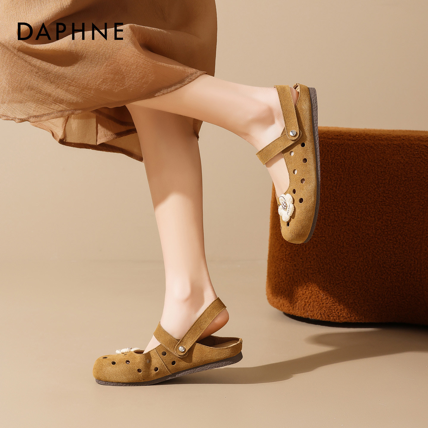 达芙妮栗色勃肯凉鞋女2026夏季新款镂空透气平底孕妇一脚蹬包头拖