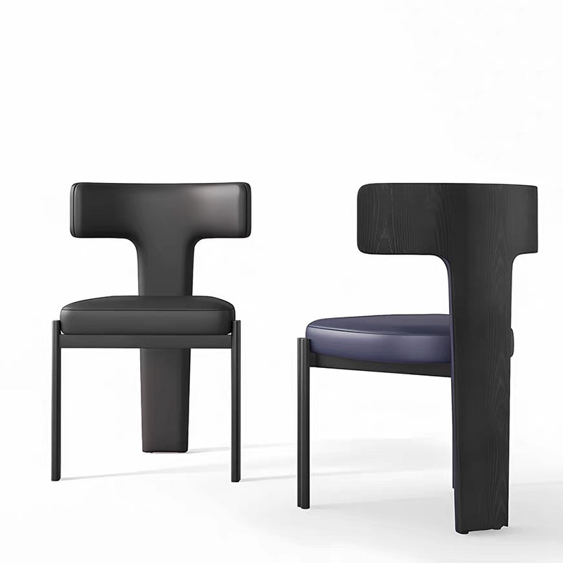 轻奢侘寂风餐椅皮软包设计师现代弯曲木咖啡厅实木椅子家用书房椅