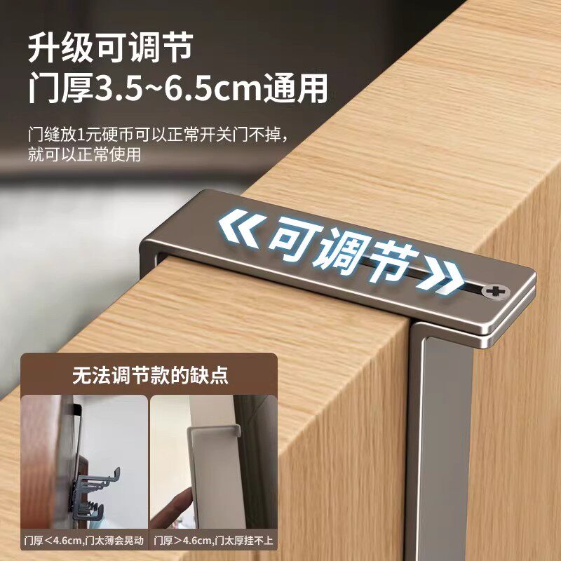 吉百居门后挂钩挂衣架免打孔衣服包包收纳架卧室门强力承重衣帽钩