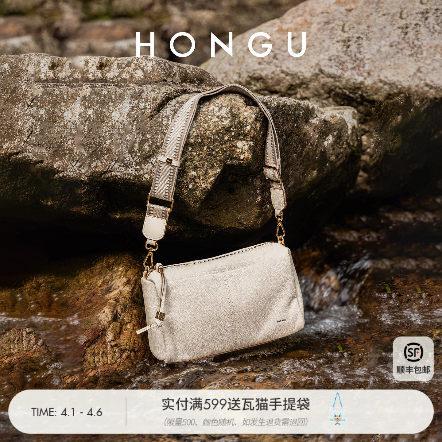 红谷包包2026新款夏季时尚真皮单肩腋下包波士顿枕头包女士包小包