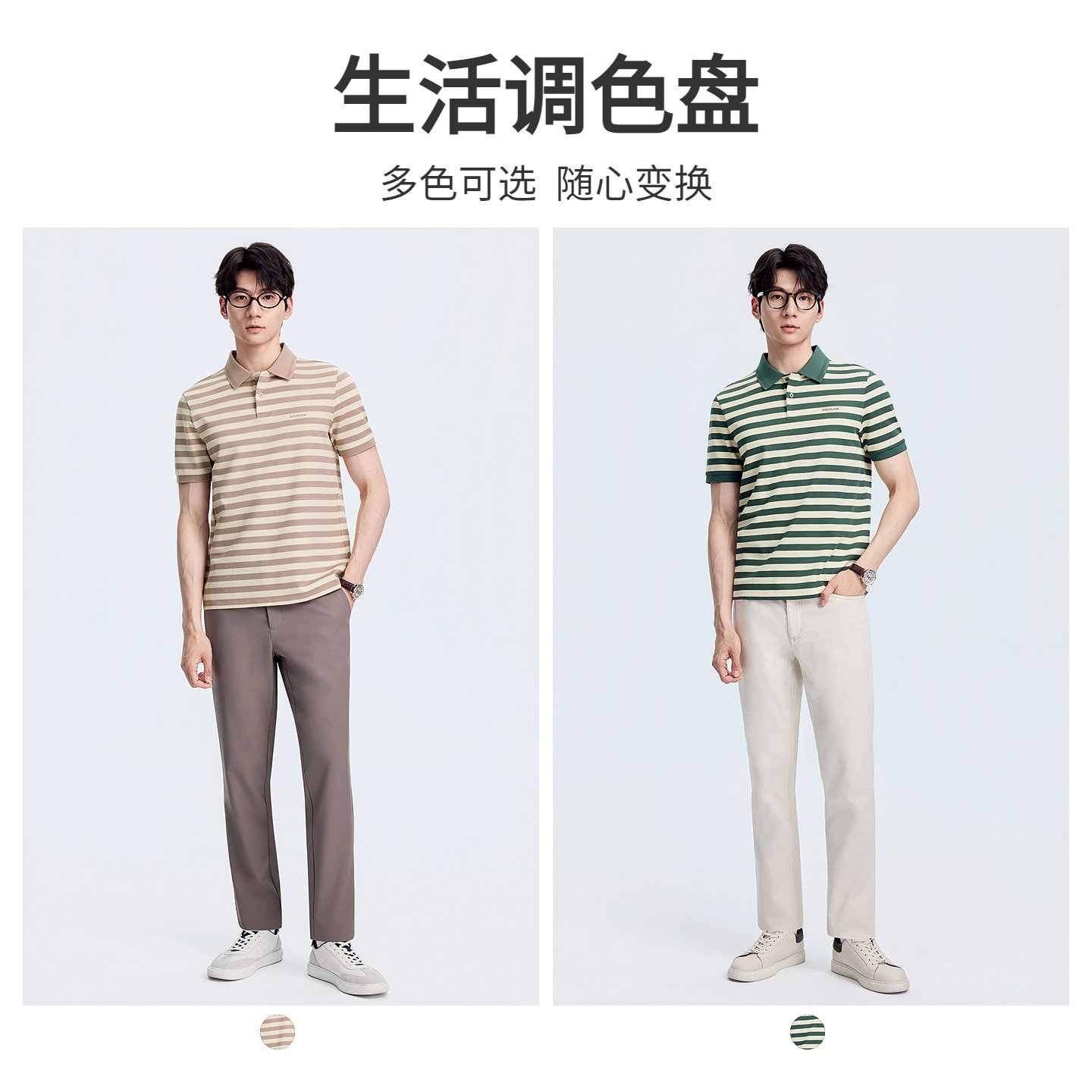 【条纹款】金利来polo衫男款夏季新款桑蚕丝撞色时尚短袖T恤衫男