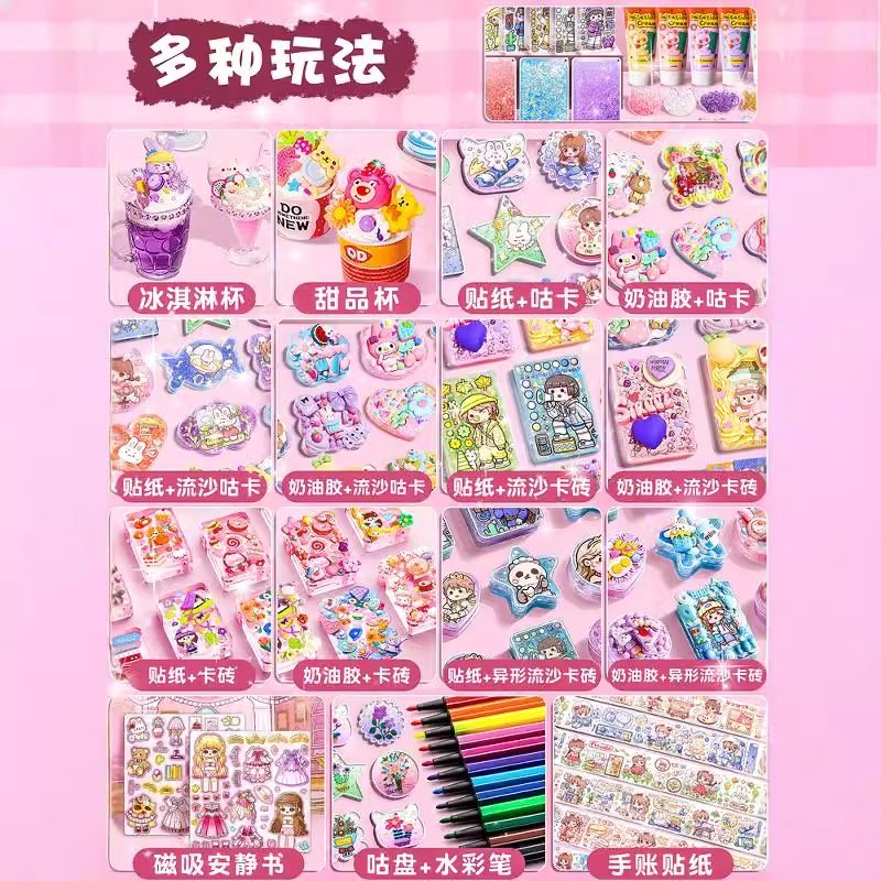 奶油胶咕卡套装贴纸全套女孩手工diy玩具材料包流沙咕咔盘女生古卡手账豪华版3D密码锁6岁生日儿童新年礼物