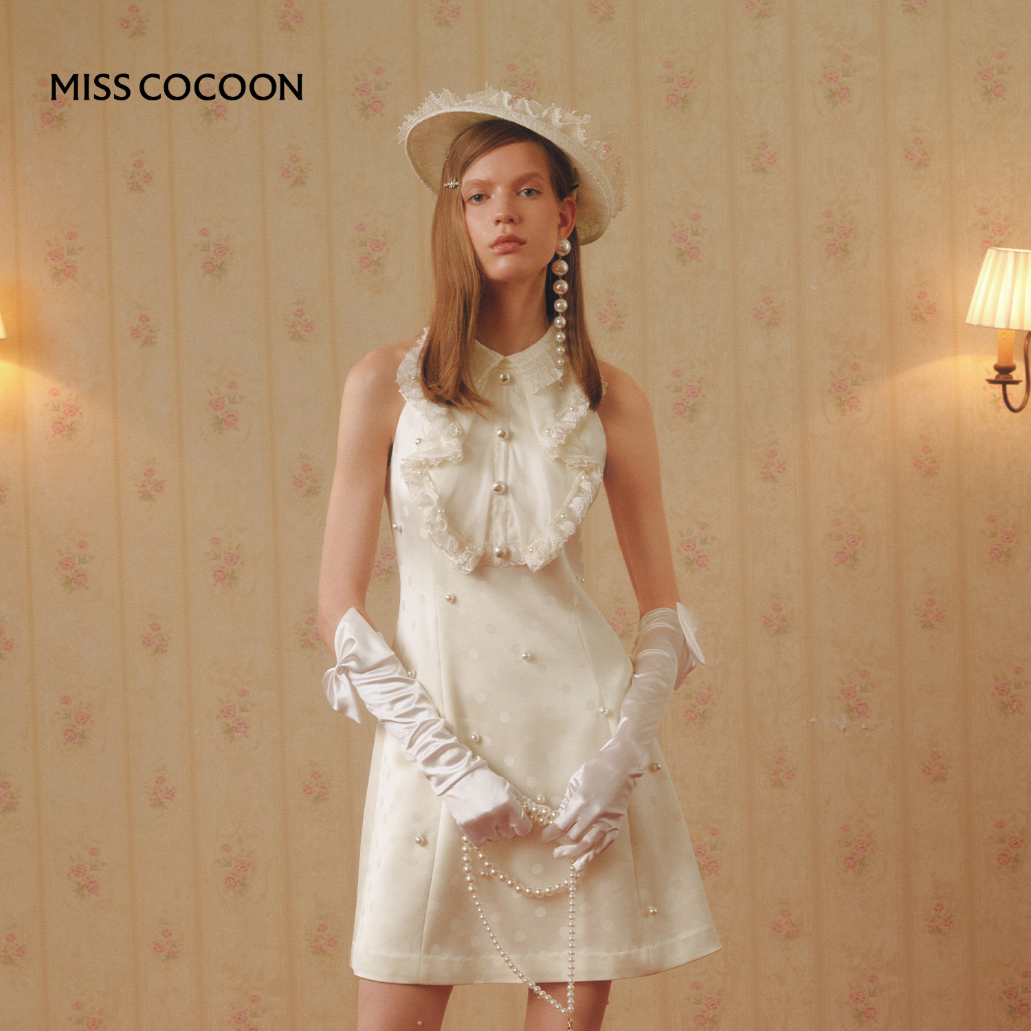 MISSCOCOON可可尼蕾丝花边白色裙子女2026春季新款醋酸无袖连衣裙