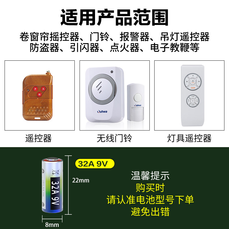 32a9v电池小短款L电动卷帘门车库闸门遥控器9v32a小电池电池门铃灯具引闪器灯小型碱性电池5节圆柱电子遥控器