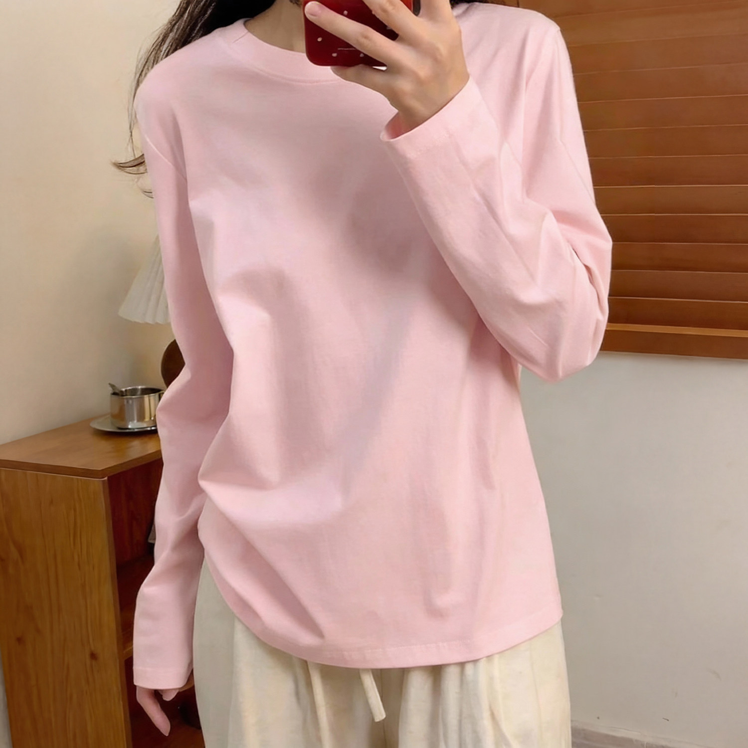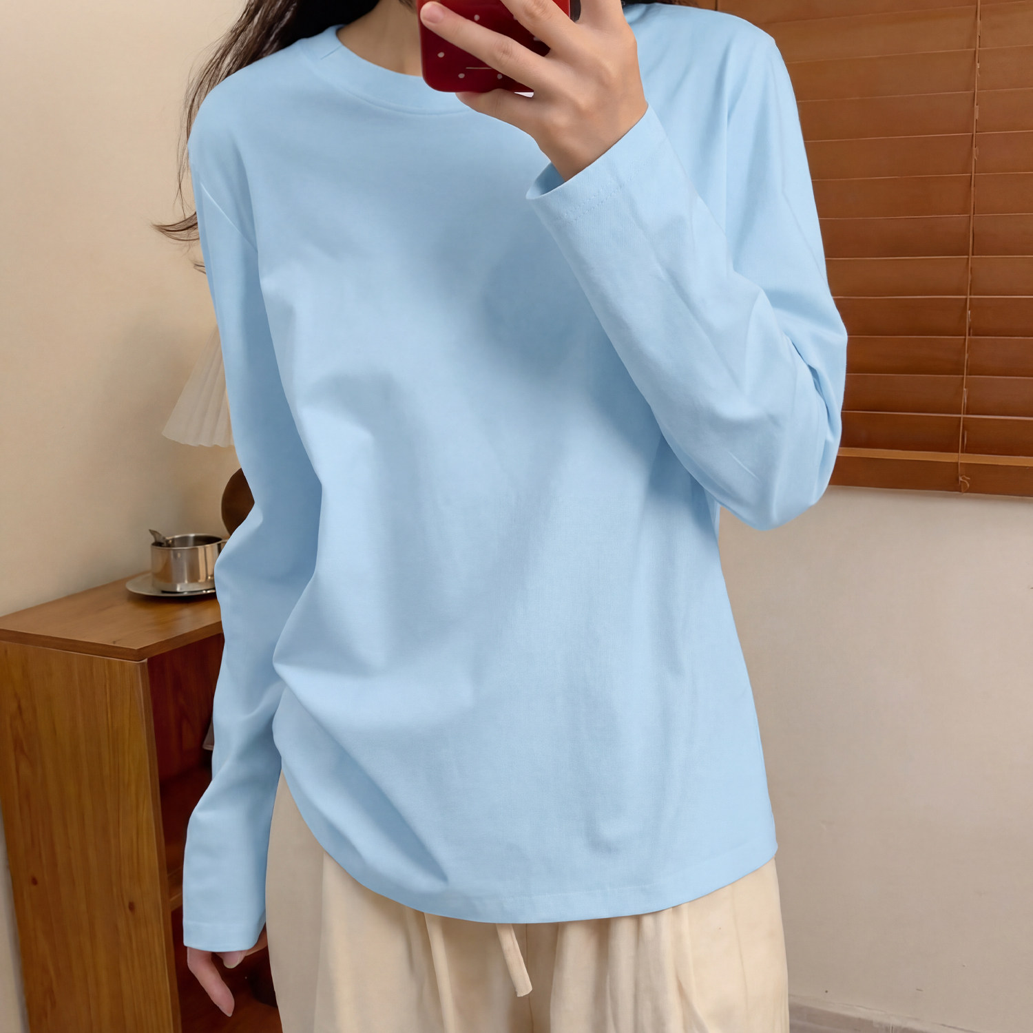 春秋莫代尔长袖打底衫女圆领休闲大码纯色上衣宽松T恤衫薄款秋衣
