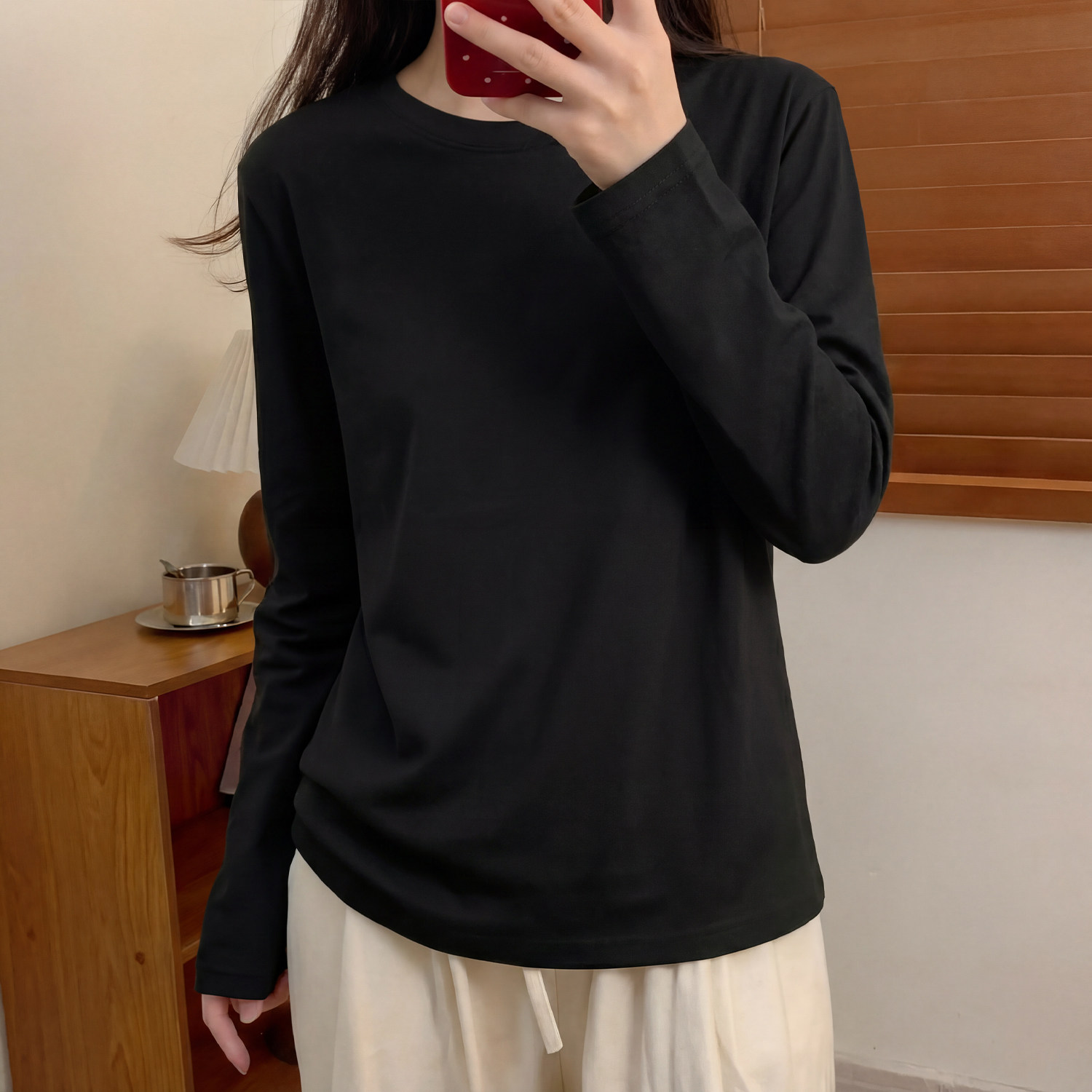 马登新疆棉黑白色基础款正肩磨毛修身长袖t恤打底衫内搭上衣女冬