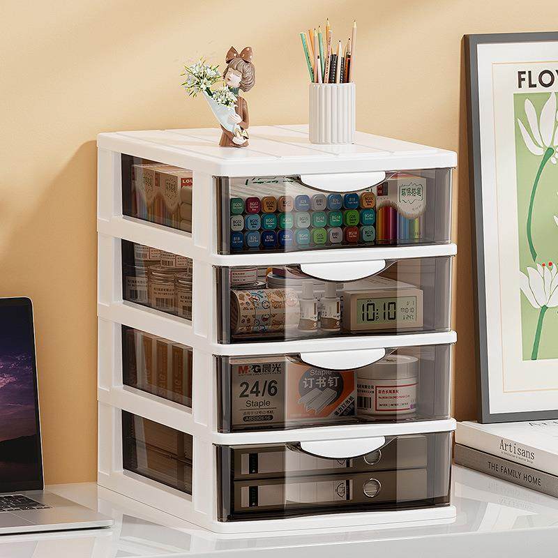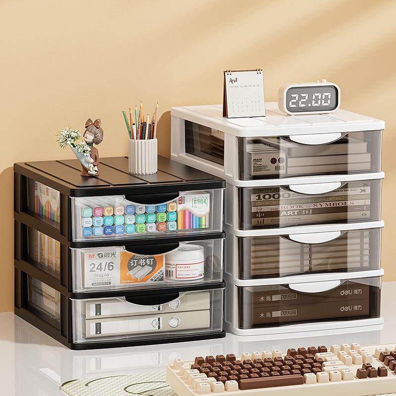 抽屉式文件柜办公室桌上收纳柜宿舍好物化妆品整理可放A4纸透明柜
