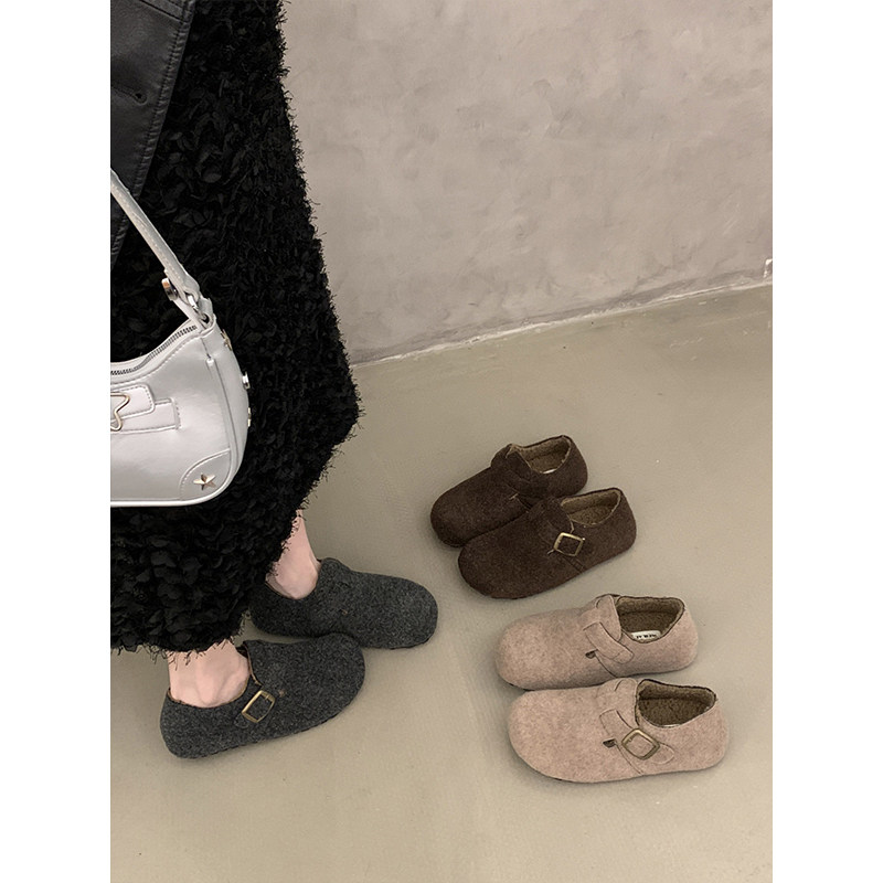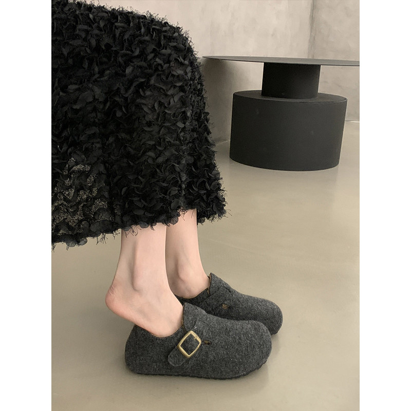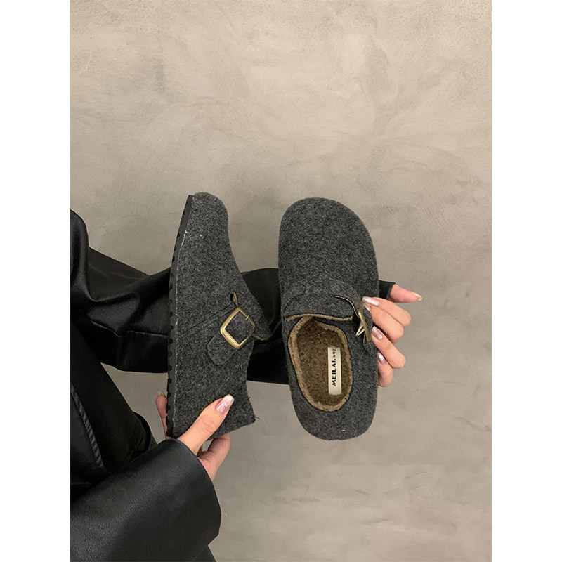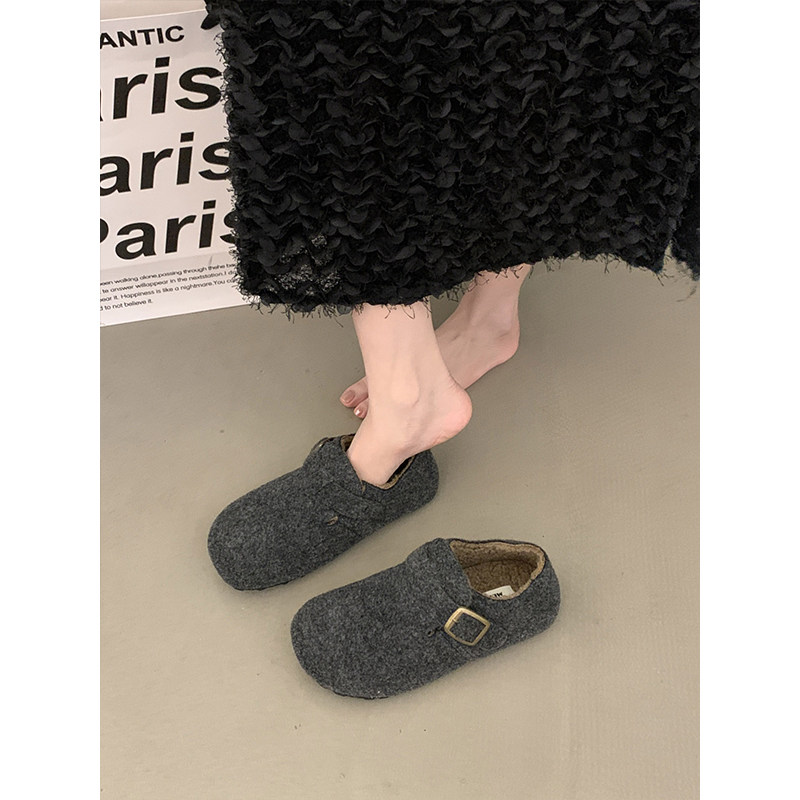 厚底灰色毛呢全包勃肯鞋女2025新款秋冬一脚蹬加绒豆豆鞋博肯棉鞋