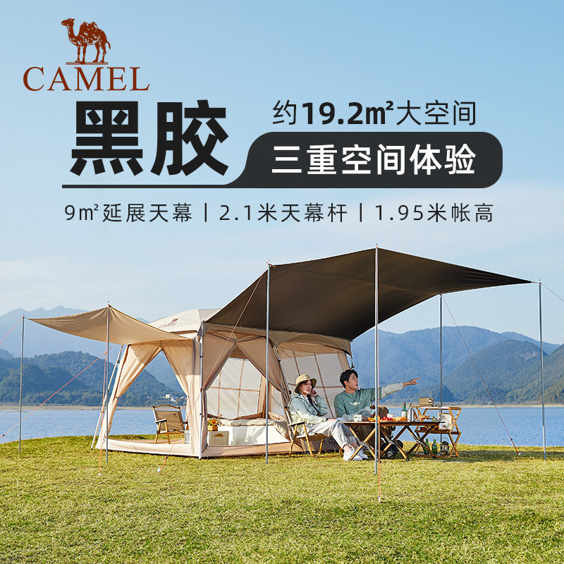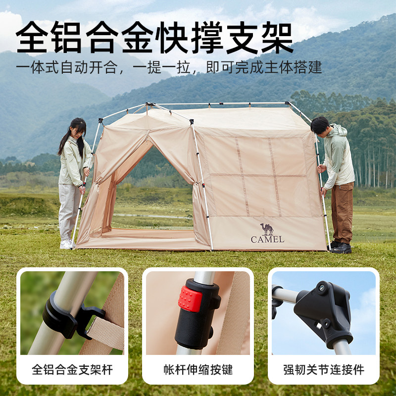 骆驼流云小筑户外帐篷自动速开便携可折叠过夜黑胶露营装备全套