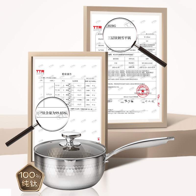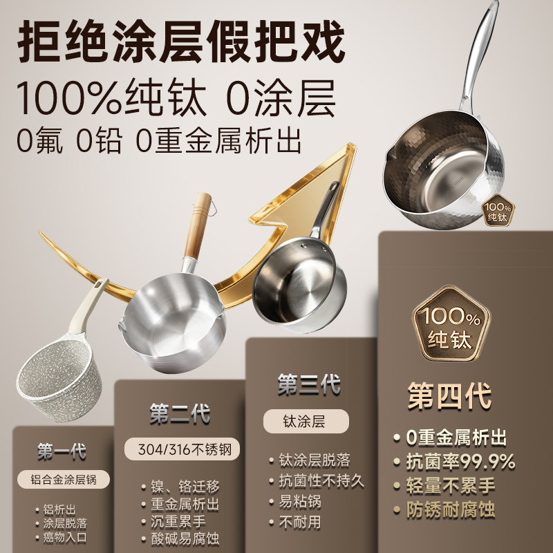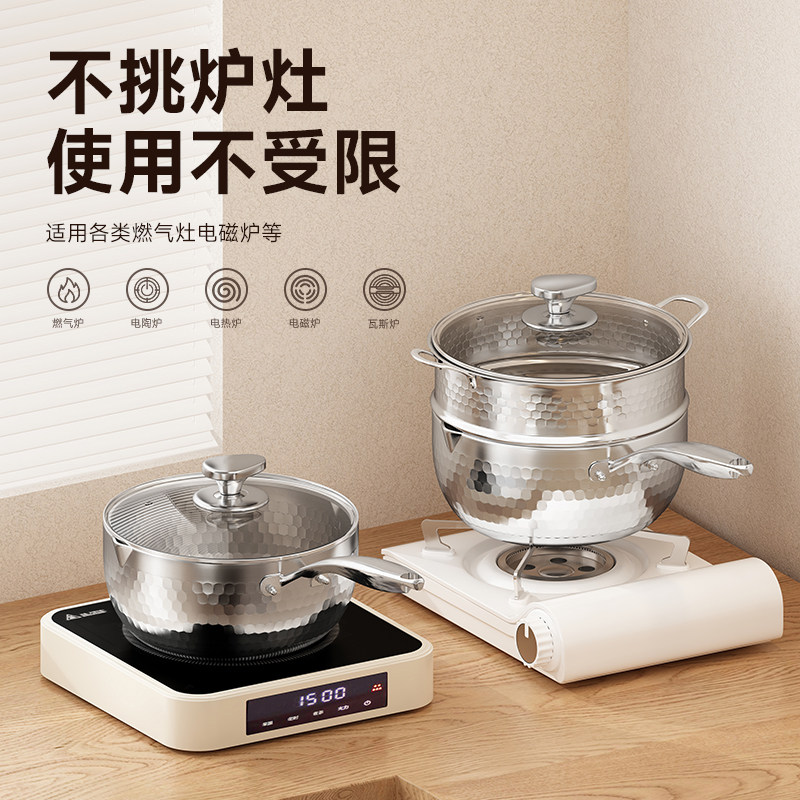 纯钛复合钢雪平锅不锈钢宝宝辅食锅煮面汤锅电磁炉迷你小奶锅家用