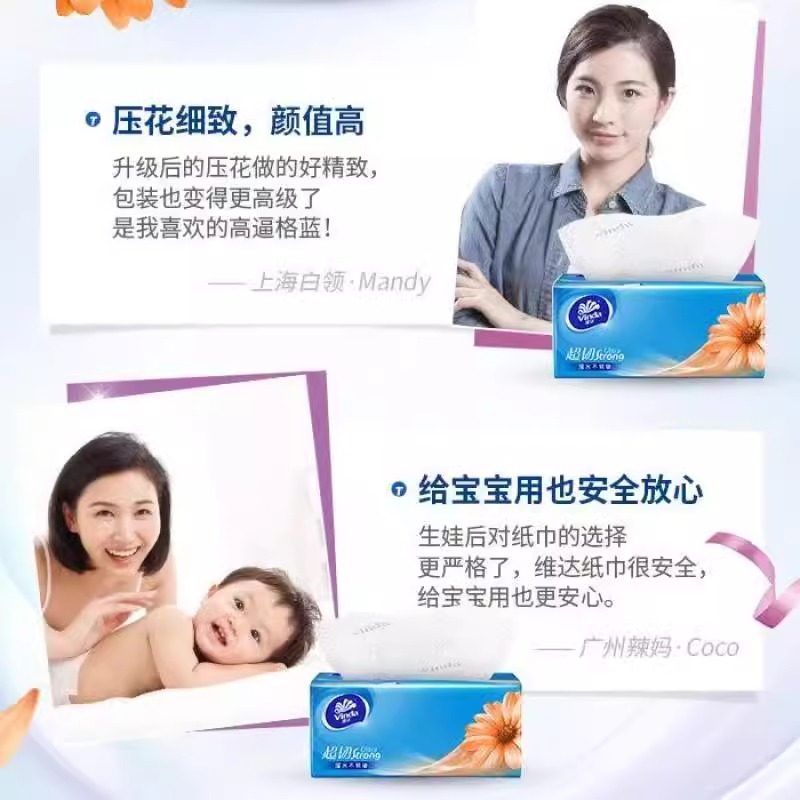 【进直播间】维达棉韧抽纸3层卫生纸巾实惠装餐巾纸面巾整箱家用