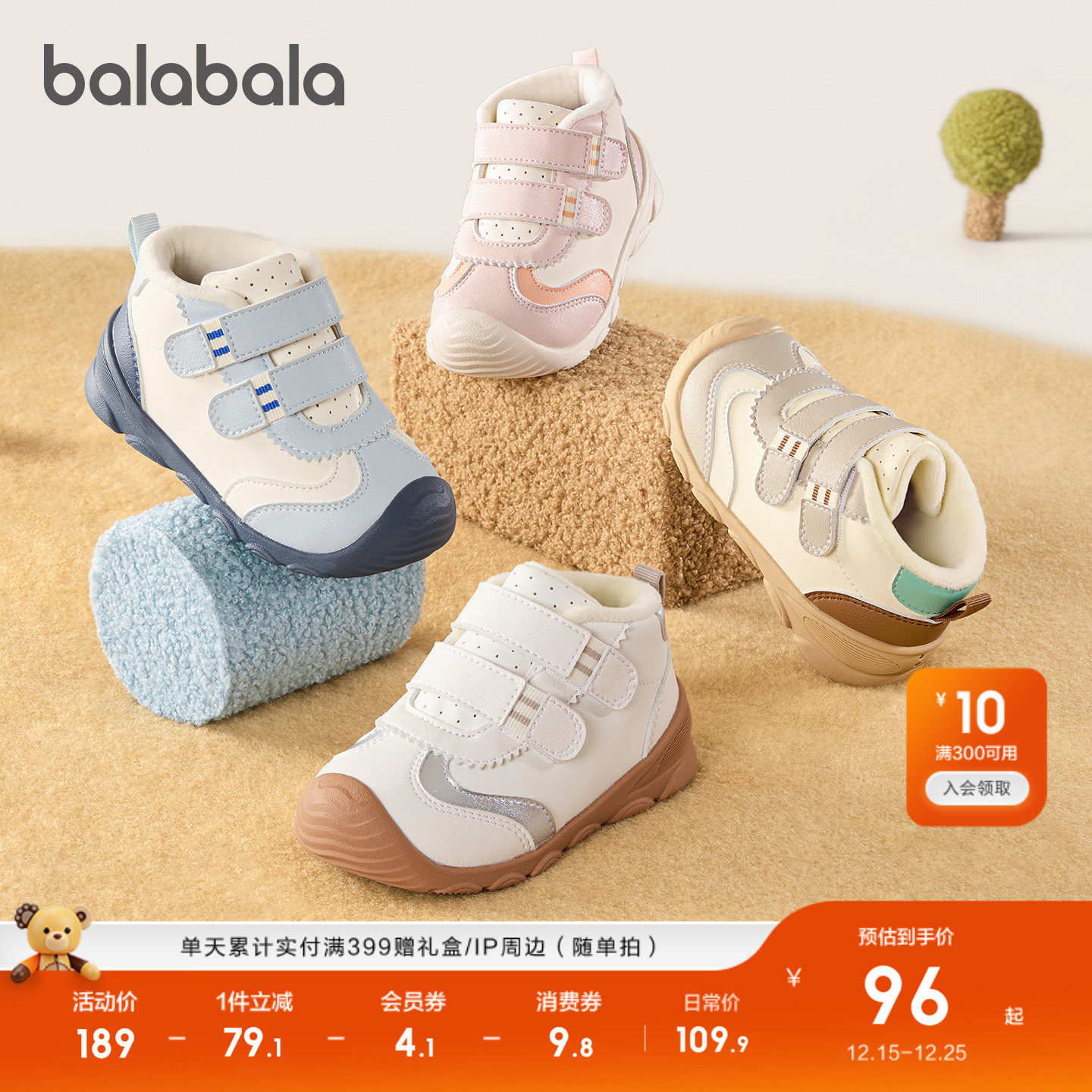 巴拉巴拉童鞋宝宝学步鞋儿童中帮加绒鞋子婴儿男宝女宝潮流防滑鞋