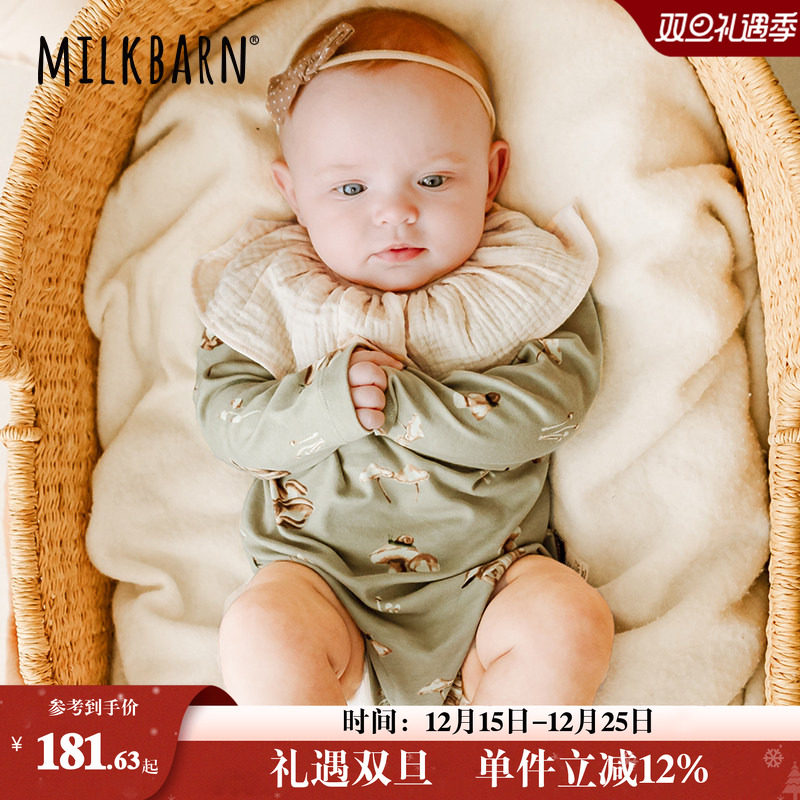 Milkbarn秋冬新品婴儿长袖包屁衣新生儿哈衣纯棉爬服宝宝衣服