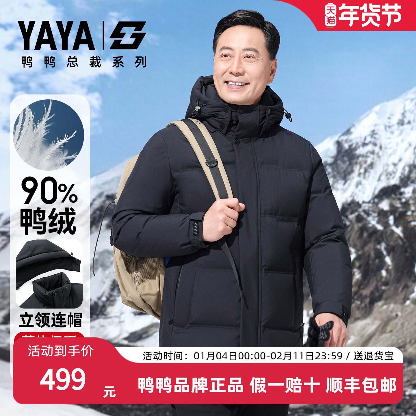 鸭鸭中老年男士羽绒服2025冬季新款保暖防风可脱卸帽厚外套爸爸装