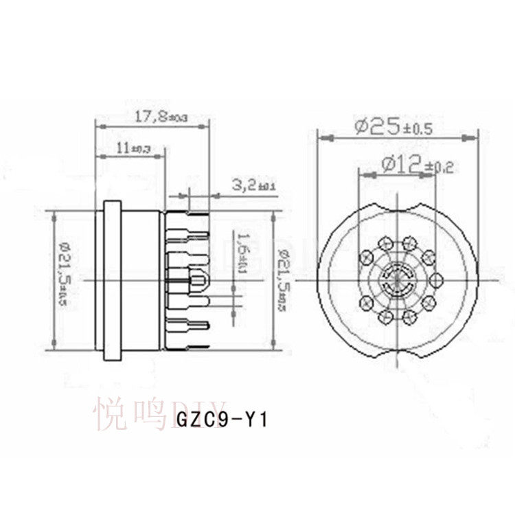 小九脚陶瓷管座GZC9-Y1用12AX7 ECC88 6922 EL84 EF86电子管PCB板