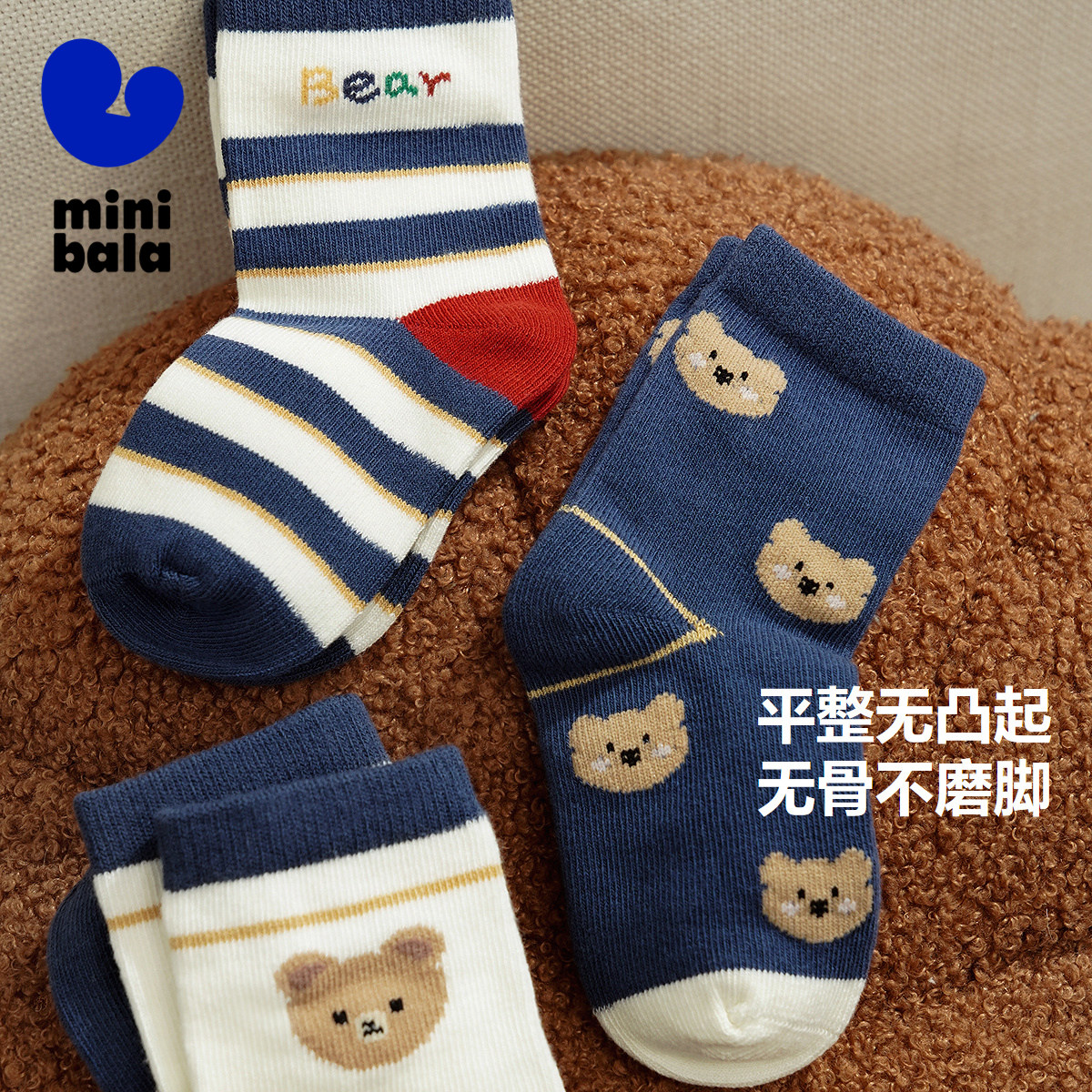【3双装】迷你巴拉婴儿袜子男女宝宝棉袜柔软抑菌中筒袜年春
