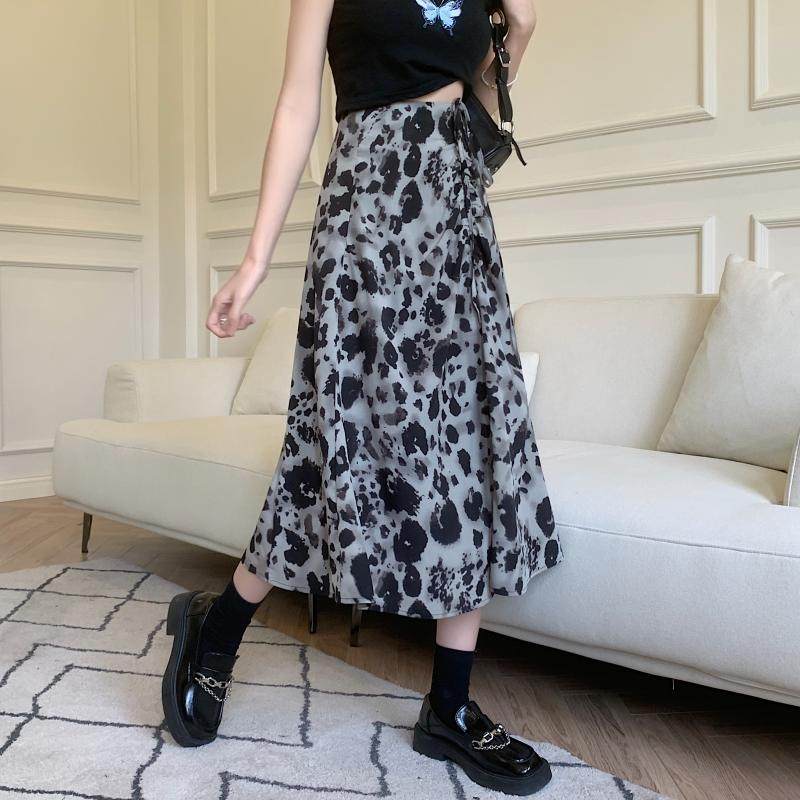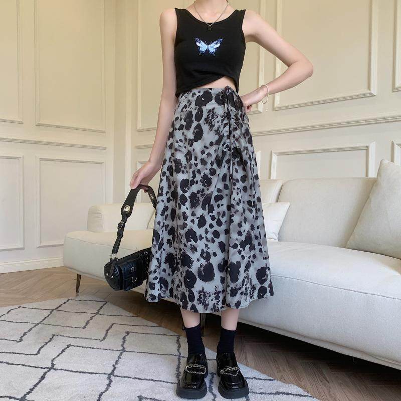 大码不规则扎染半身裙女夏设计感小众A字包臀裙水墨印花遮胯长裙
