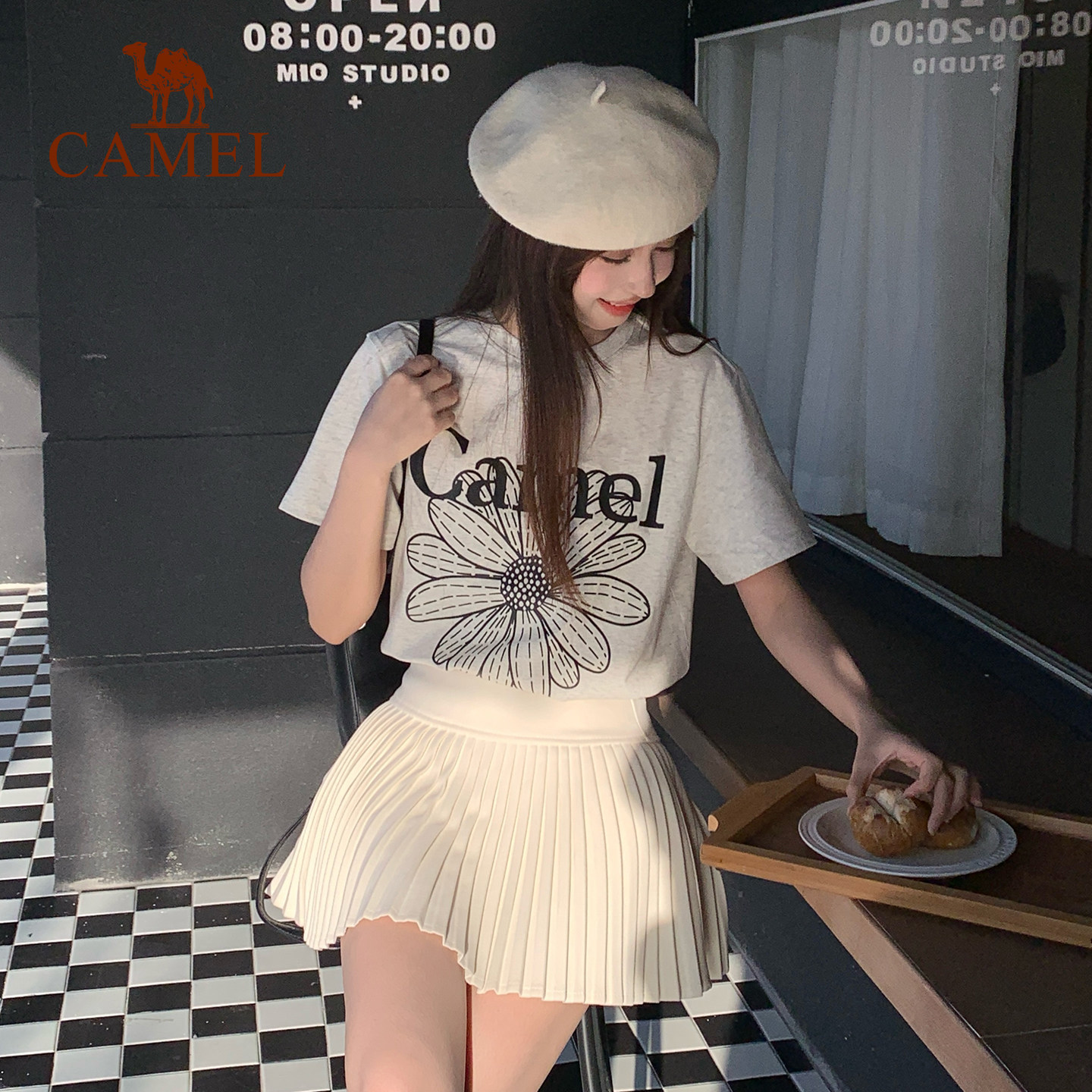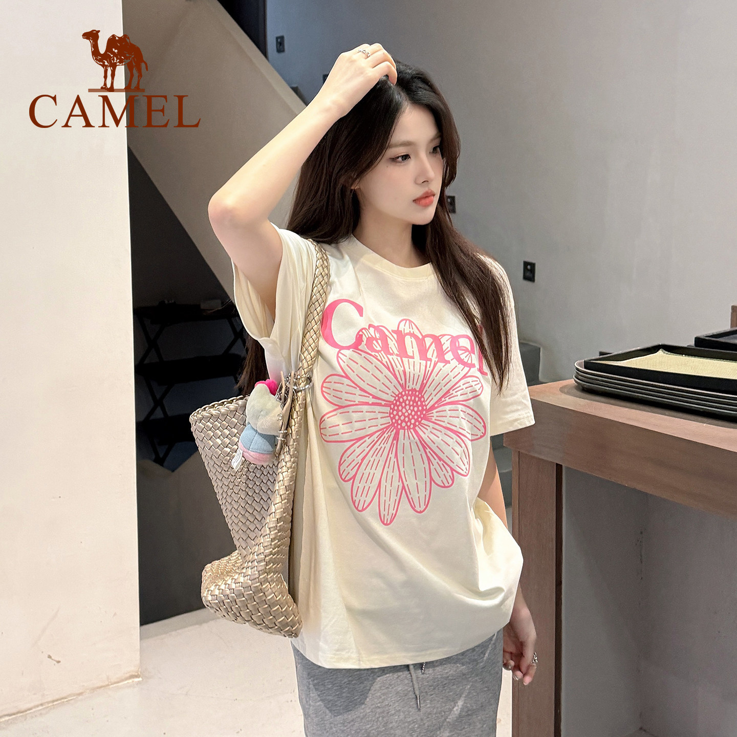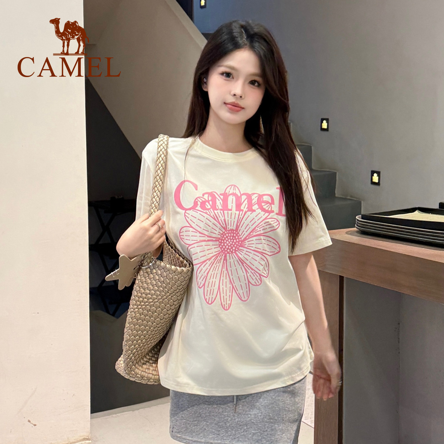 骆驼冰皮T神小雏菊T恤短袖2026夏季新款棉感宽松休闲韩系圆领上衣