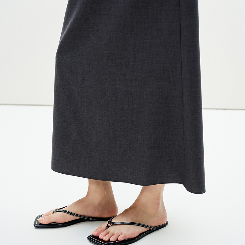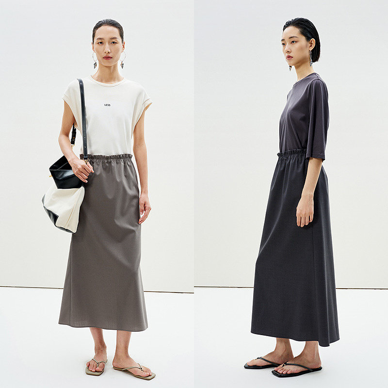 LESS春夏花苞腰西装裙女精纺羊毛通勤垂感宽松半身裙2P4D10320