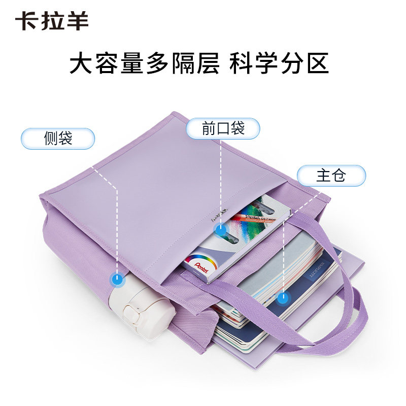 卡拉羊小学生多隔层文件袋简约女补习袋耐脏男同学送礼天鹅堡