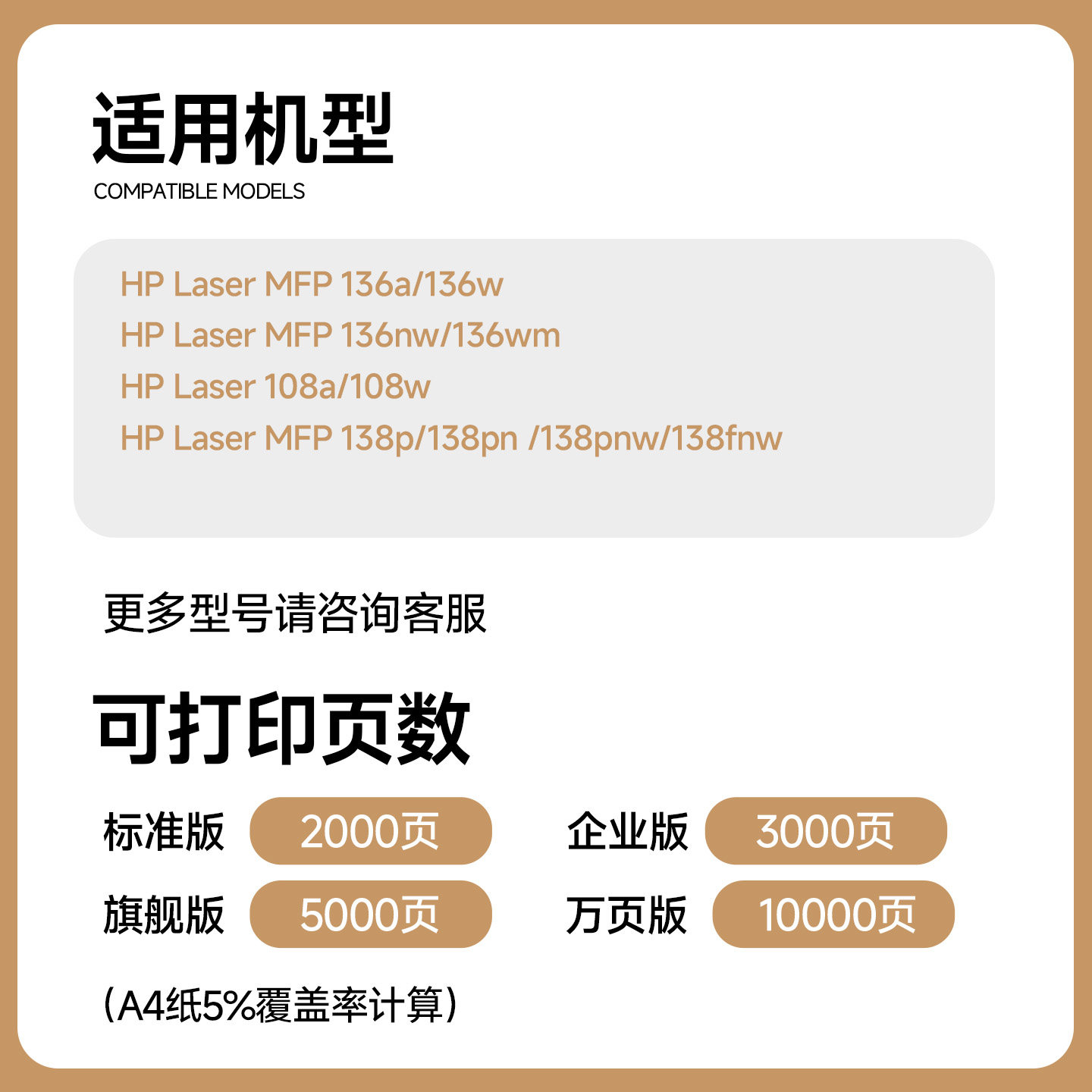 适用惠普136w硒鼓HP 110A墨盒136a/wm/nw打印机粉盒108a/w 138p/pn/pnw硒鼓W1110A碳粉墨粉HP Laser MFP
