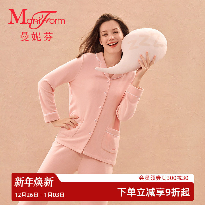 曼妮芬小翻领家居服套装女士睡衣睡裤舒适长袖长裤起居服20320720