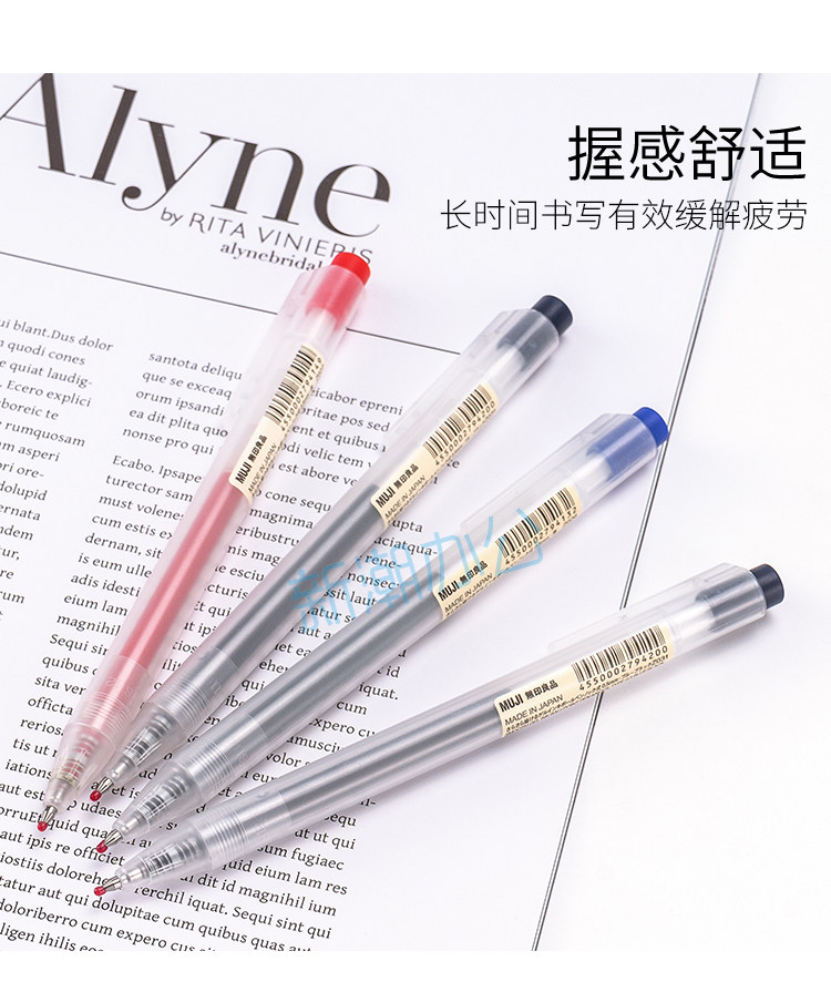 MUJI/无印良品按动笔新款水笔黑色0.5笔芯按压式学生用中性签字笔
