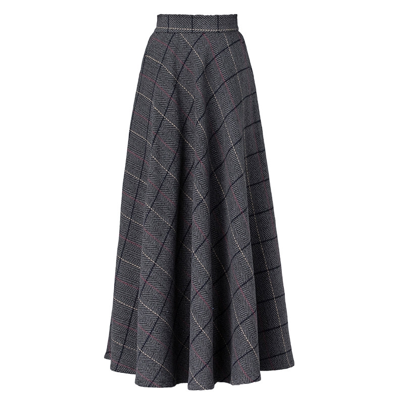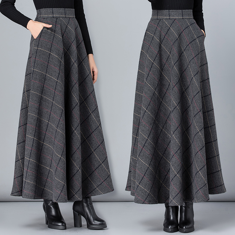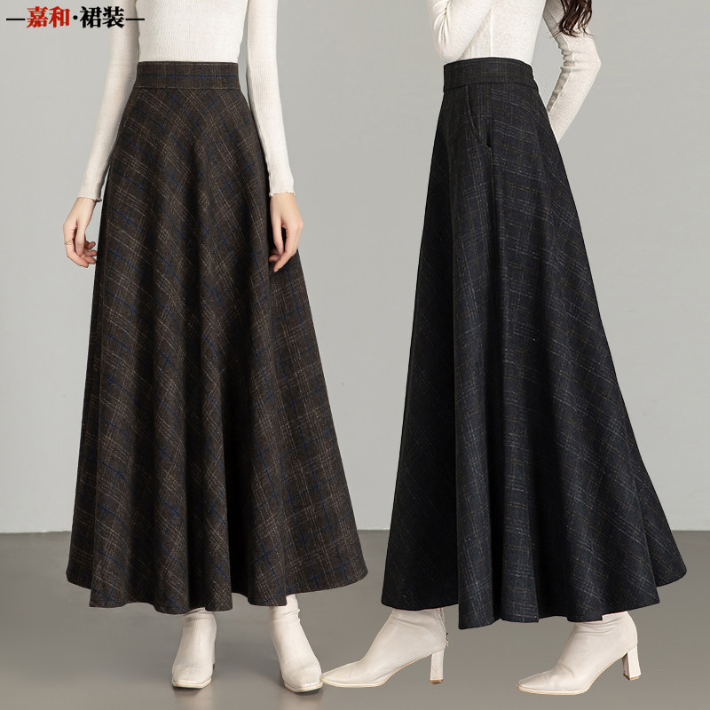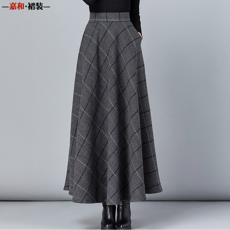 2026秋冬毛呢格子半身裙女百搭高腰A字裙中长款加厚显瘦大码长裙