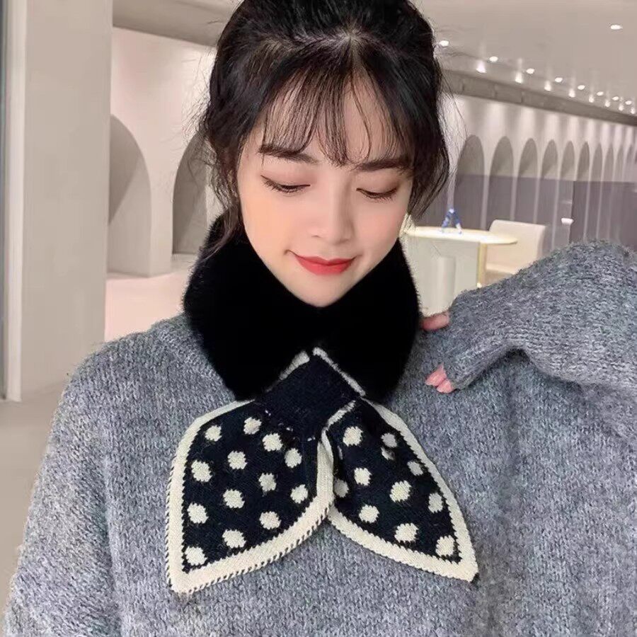 毛绒围巾女款2025新款冬韩系氛围感可爱百搭保暖交叉毛领围脖护颈