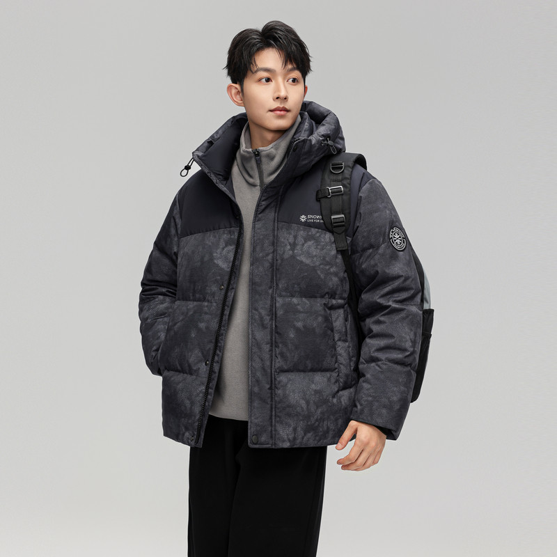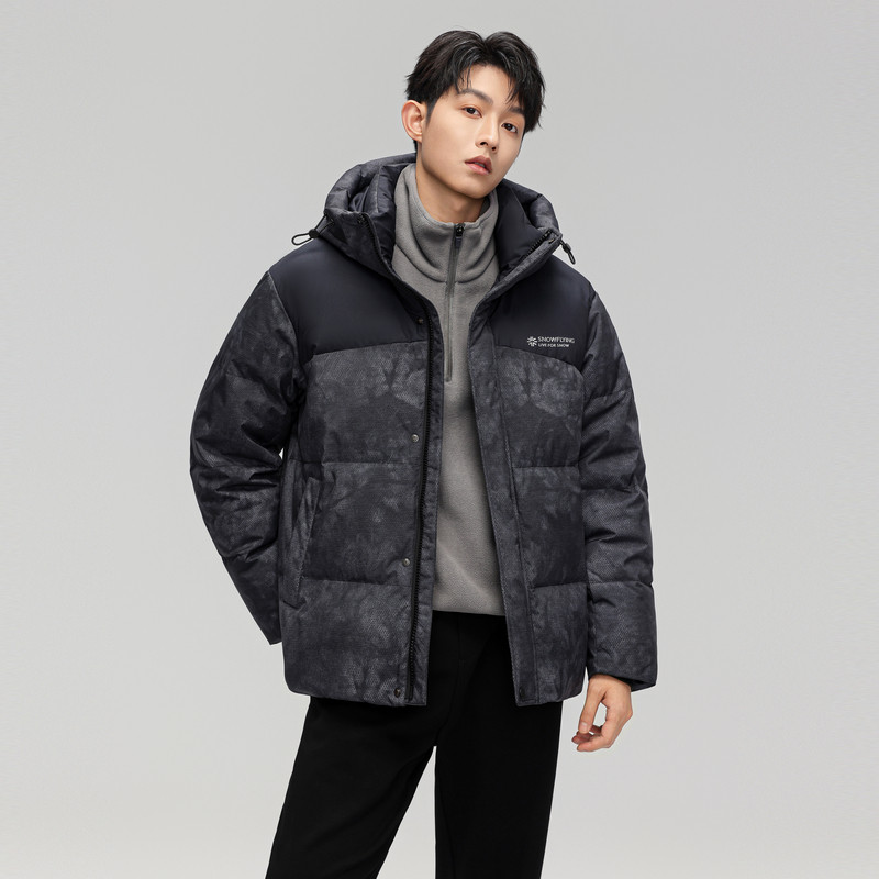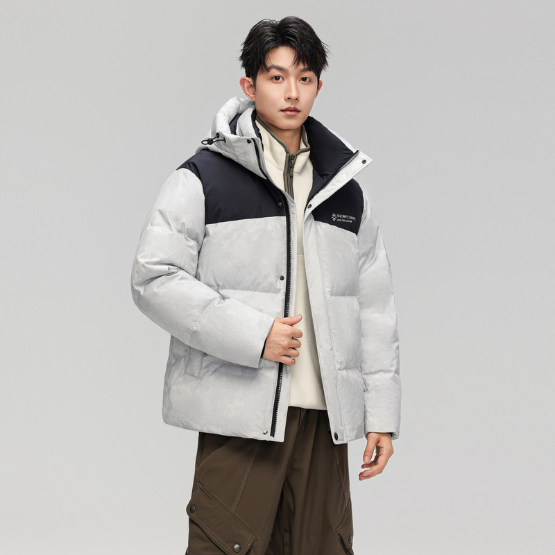 雪中飞2026春新款连帽羽绒服男士立领撞色暗花户外时尚运动保暖
