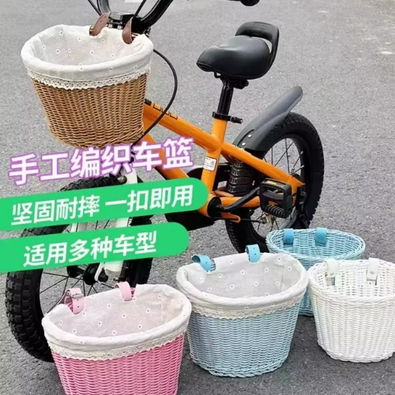 儿童自行车车篮复古藤编车筐平衡车编织前篮筐溜娃神器车篮子配件