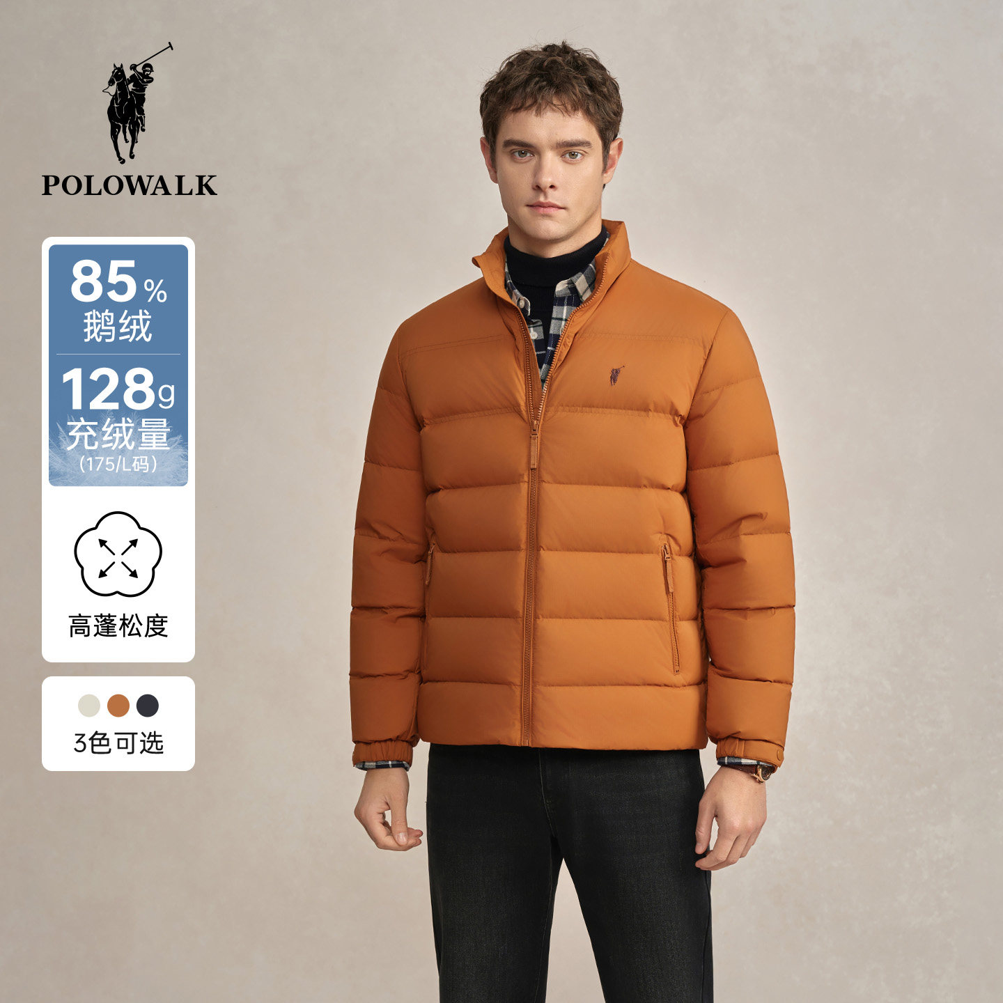 POLOWALK男式短款羽绒服2025冬季新品鹅绒立领休闲通勤羽绒服外套