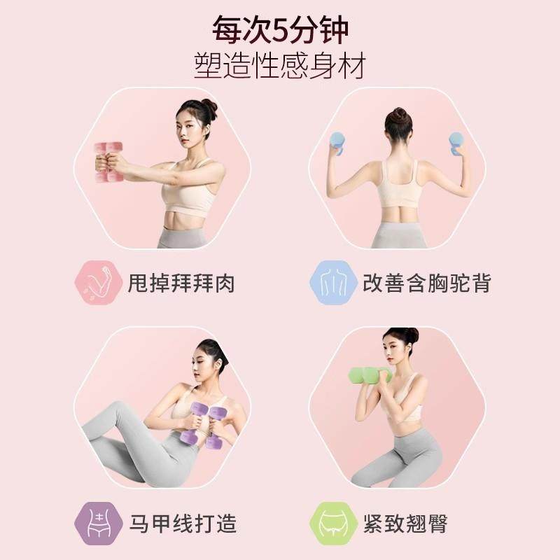 哑铃女士健身家用器材六角儿童练臂肌瑜伽包胶2KG一对男士小哑铃