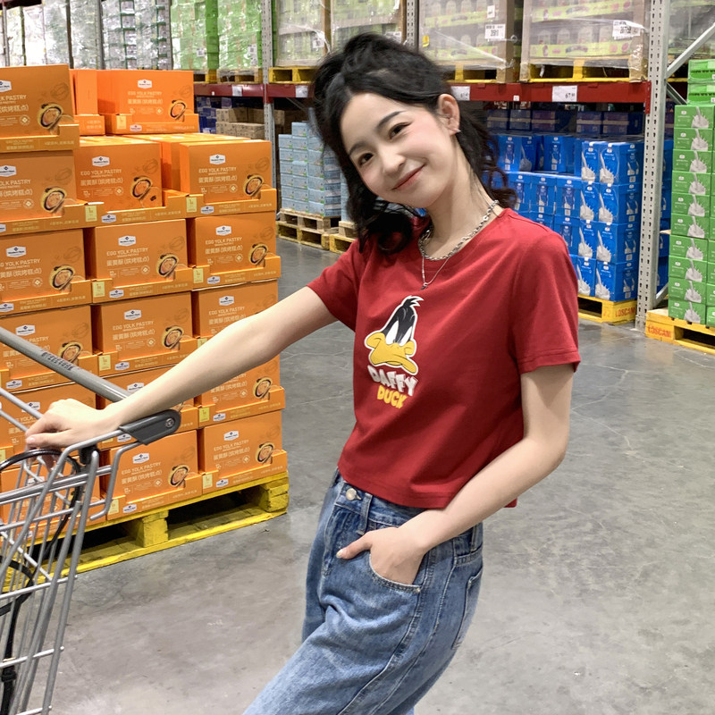 唐狮夏季时尚短款红色短袖T恤女潮紧身小衫辣妹内搭上衣可爱